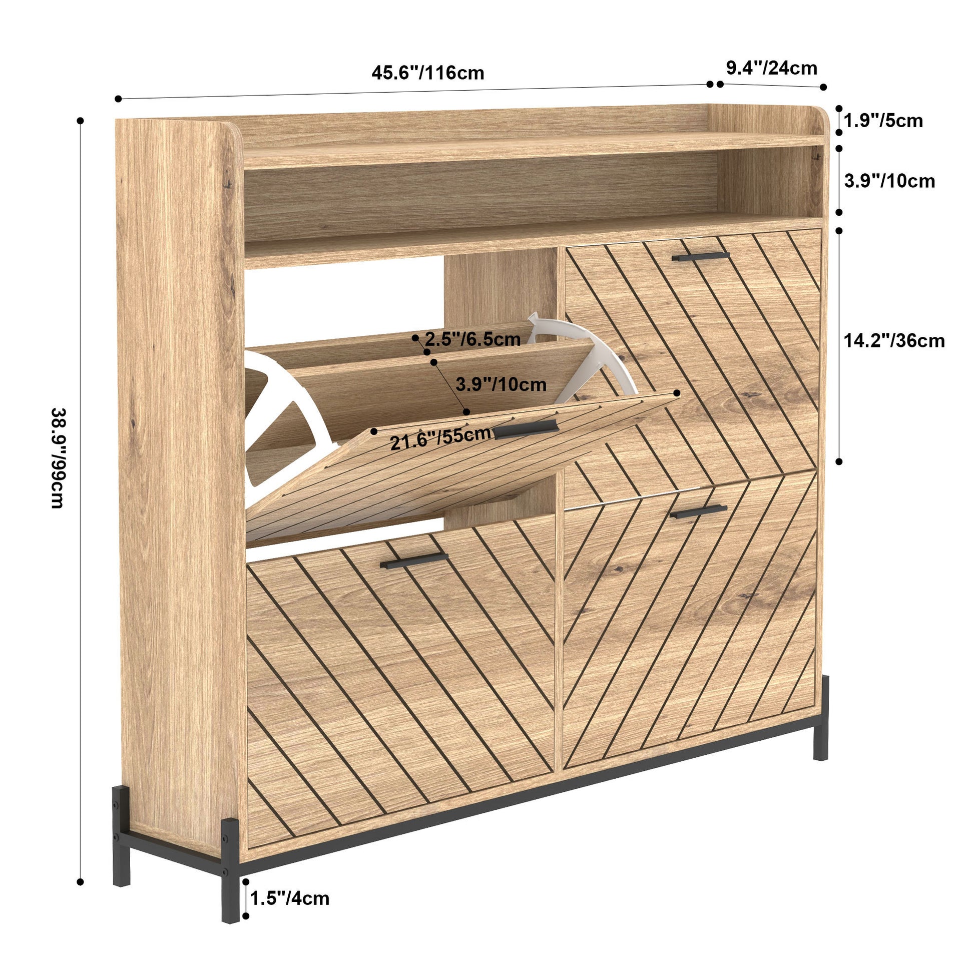 - Efficient Storage: Equipped with 4 flip doors, this cabinet offers hidden storage for your shoes, keeping them organized and out of sight.