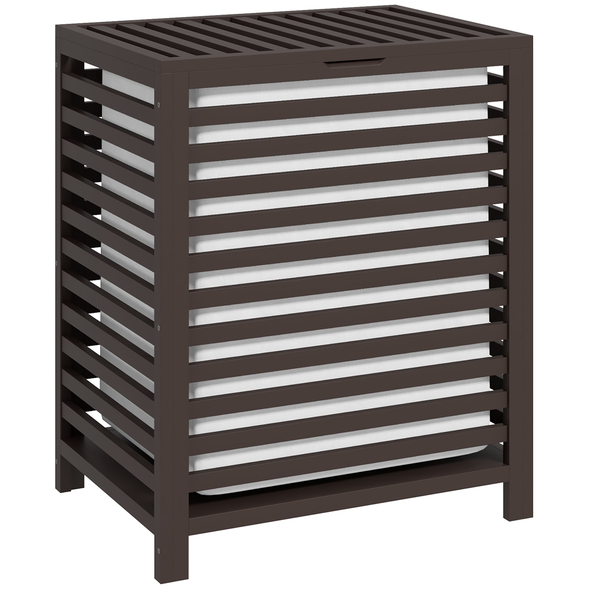 HOMCOM Bamboo Laundry Hamper with Lid, Laundry Basket with Removable Liner Bag, Dirty Clothes Hamper, 19.75 x 14.25 x 23.5 Inches, Coffee