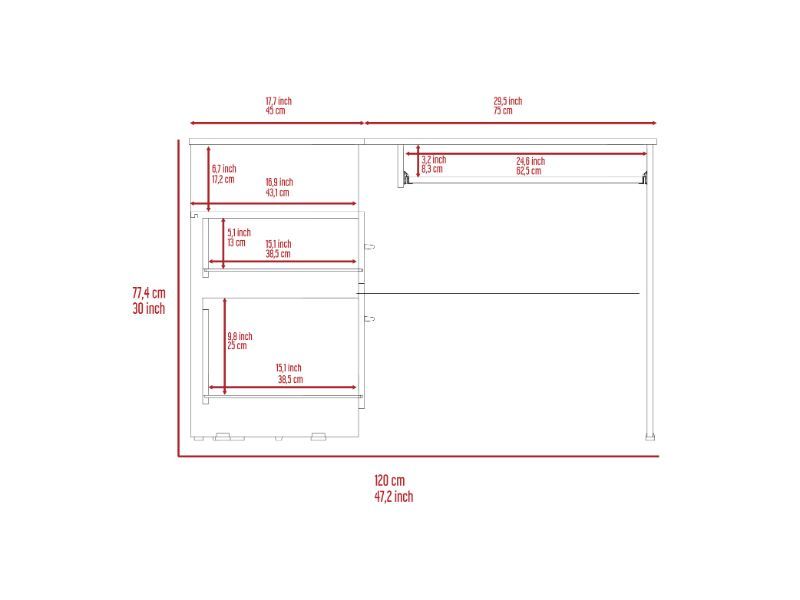 - L-Shaped Configuration: The unique L-shape offers a generous top surface measuring 41.3"W x 20"D on one side and 47.2"W x 20"D on the other, ensuring plenty of room for your computer, documents, and other essentials.