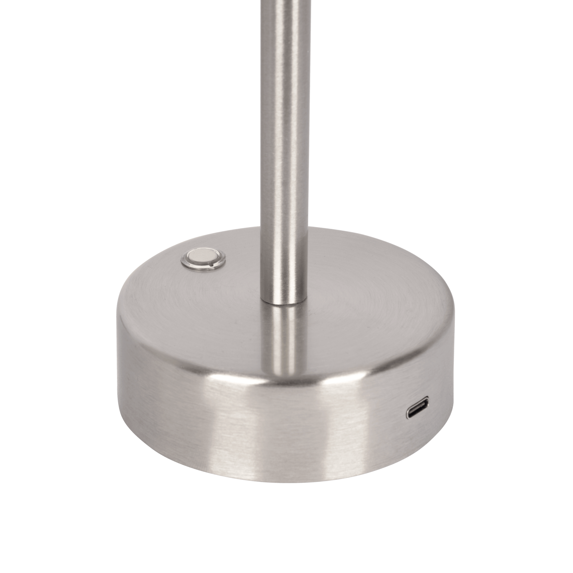 Elevate your space with a cordless, energy-efficient lighting solution. This Rechargeable LED Table Lamp features a sleek brushed nickel metal finish, a compact 5 x 5 inch base, and a modern 10.5 inch silhouette that fits beautifully on desks, nightstands, or shelves. The built-in rechargeable battery powers bright LED illumination without the clutter of cords, while a responsive touch sensor lets you turn the light on, off, and adjust brightness with a simple tap. Perfect for reading, working, studying, or creating ambiance in any room.