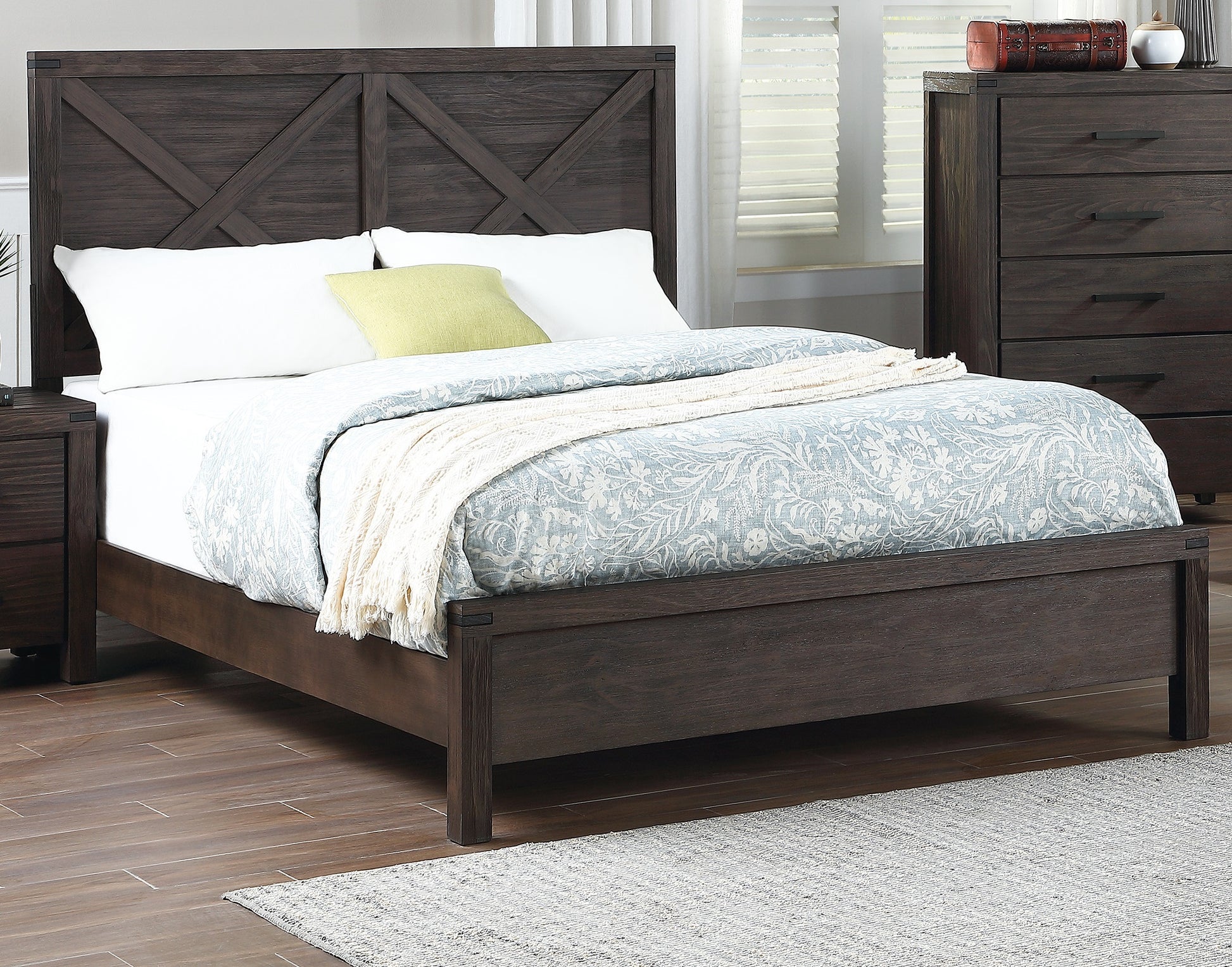Rustic Elegance Queen Size Bed with Unique X-Design Headboard - Espresso Wooden Bedroom Furniture