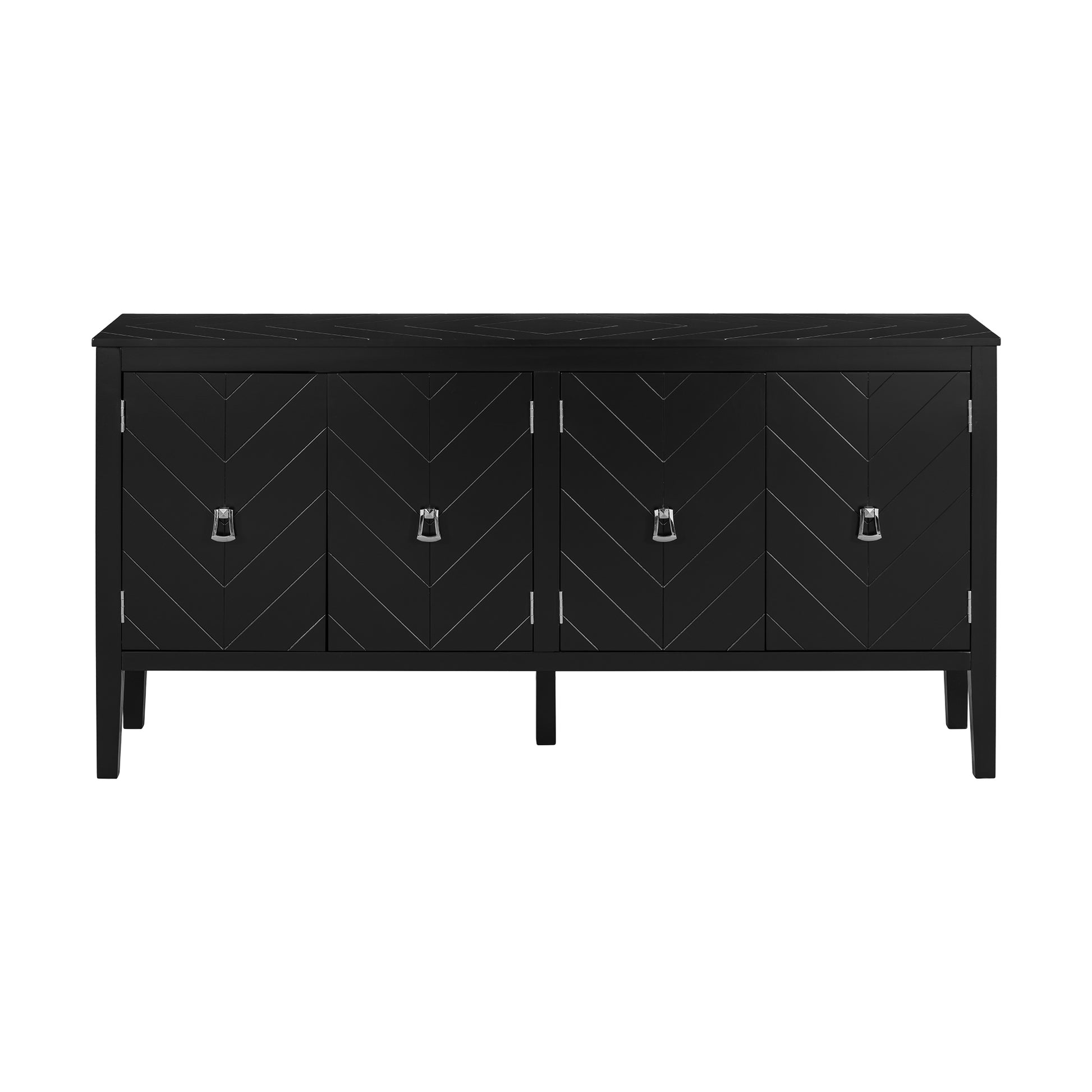 U_STYLE Four-Door Sideboard with Geometric Line Patterns and Vintage Metal Handles for Timeless Elegance,Suitable for Living Rooms, Entrance and Study Rooms
