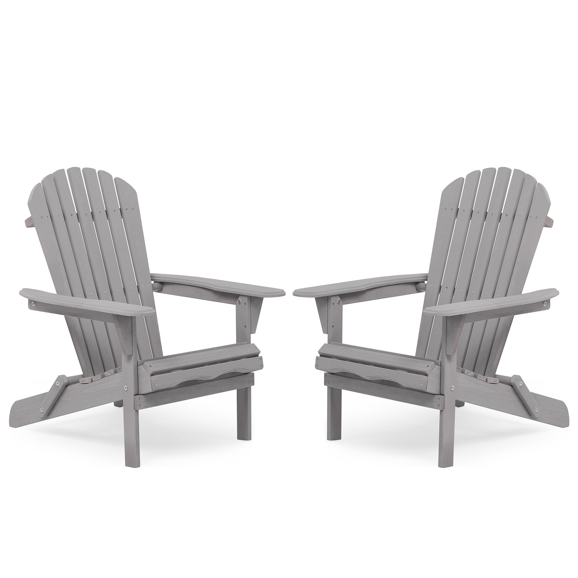 Outdoor Cedar Wood Adirondack Chair Set of 2 for Garden and Patio Comfortable Slat Back 31 Inch Gray