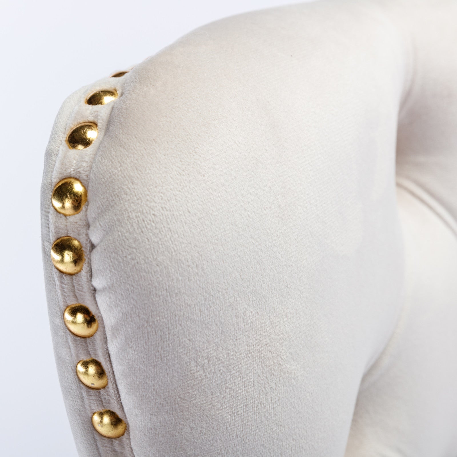 Velvet Tufted Button Office Chair with Golden Base - Adjustable Swivel Desk Chair in Beige