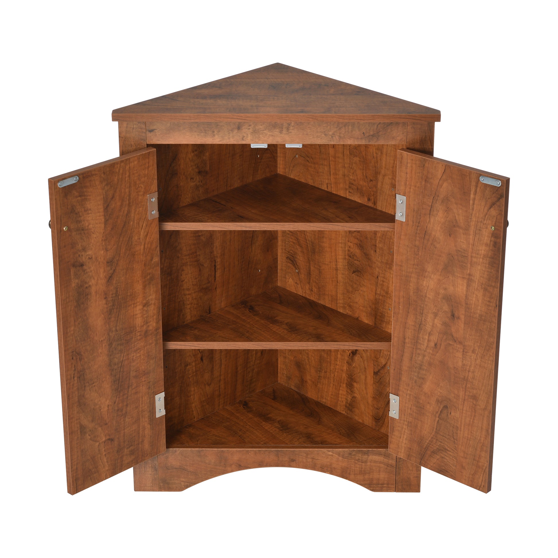 Brown Modern Triangle Corner Storage Cabinet with Adjustable Shelving for Home and Kitchen