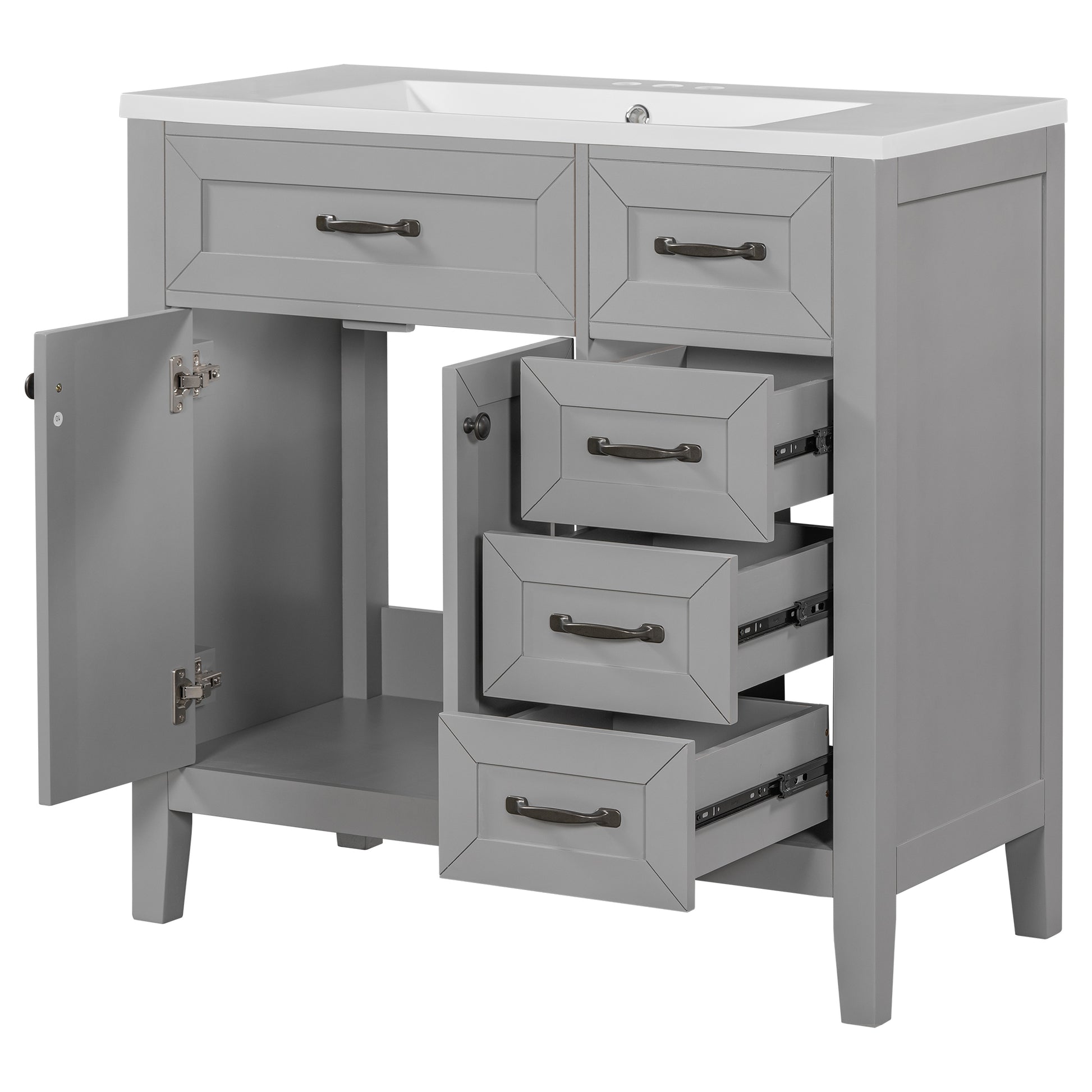 36-Inch Grey Bathroom Vanity Set with Ceramic Sink and Storage Drawers