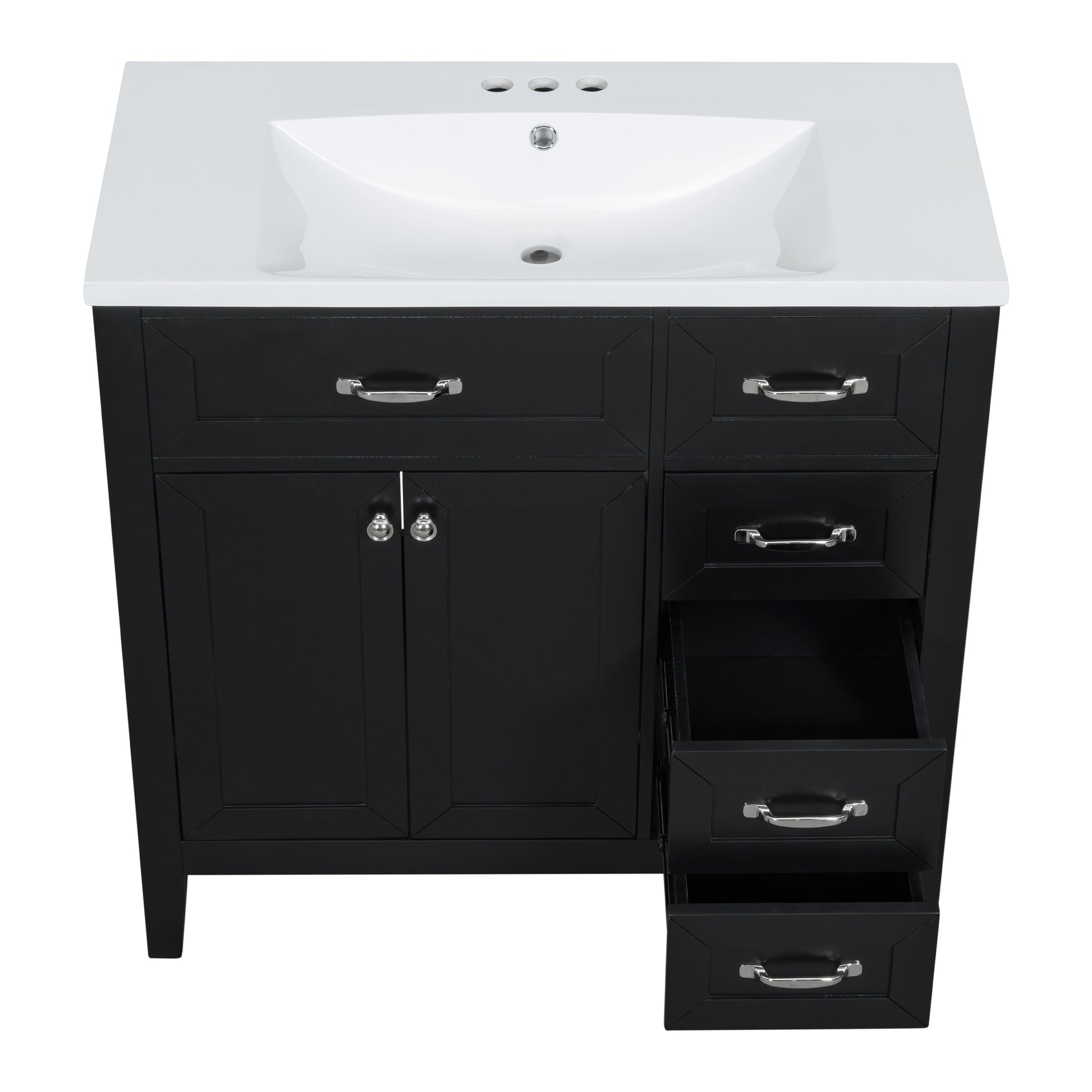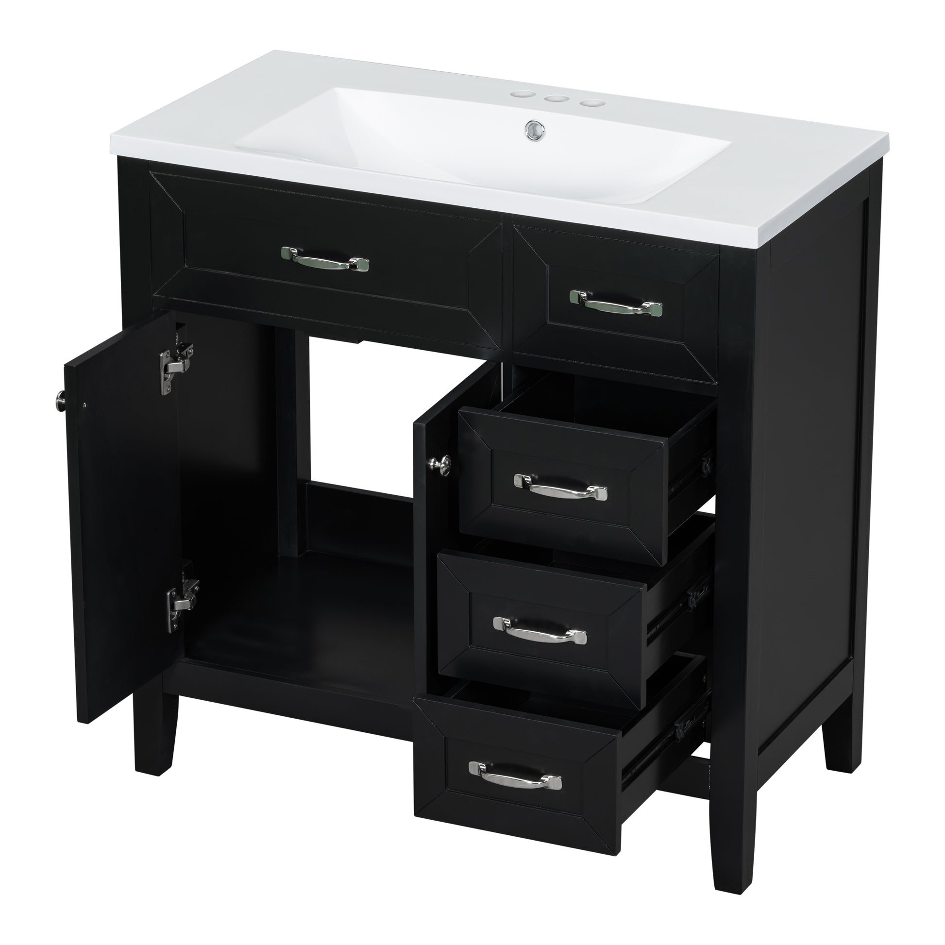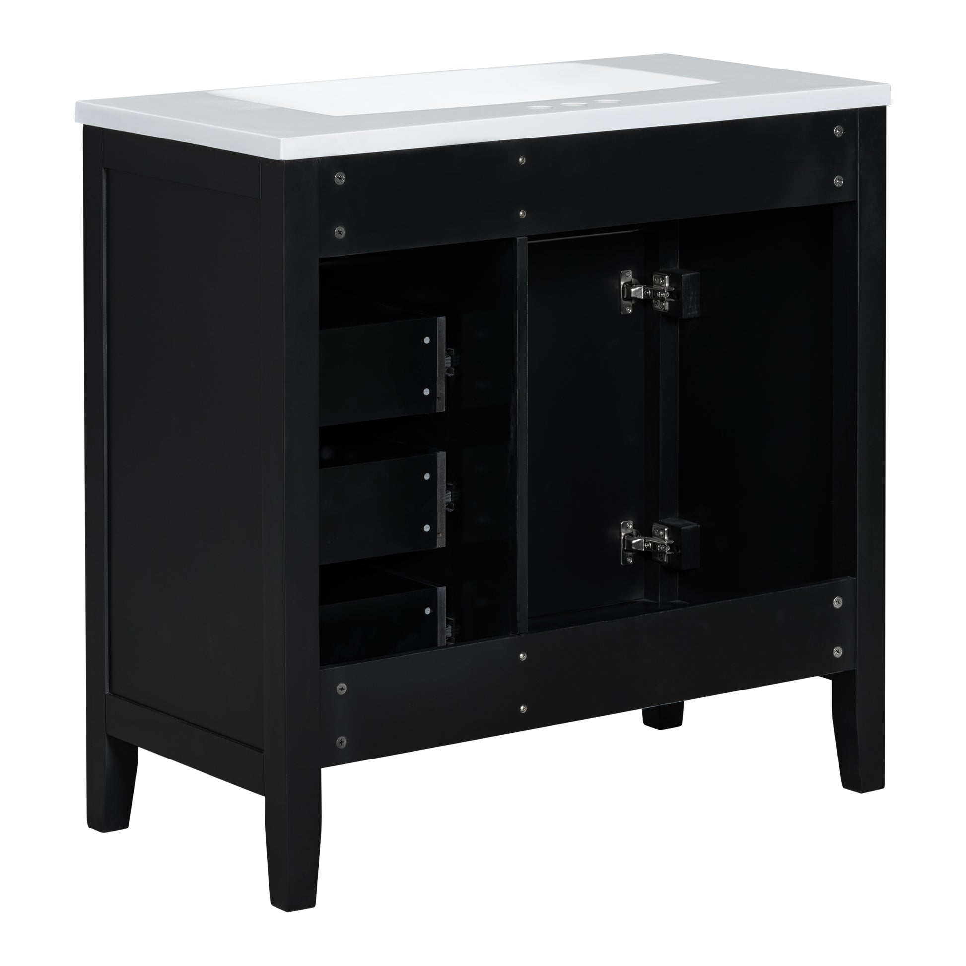 Stylish 36-Inch Black Bathroom Vanity with Integrated Sink, Durable MDF and Solid Wood Construction, Convenient Storage Drawers