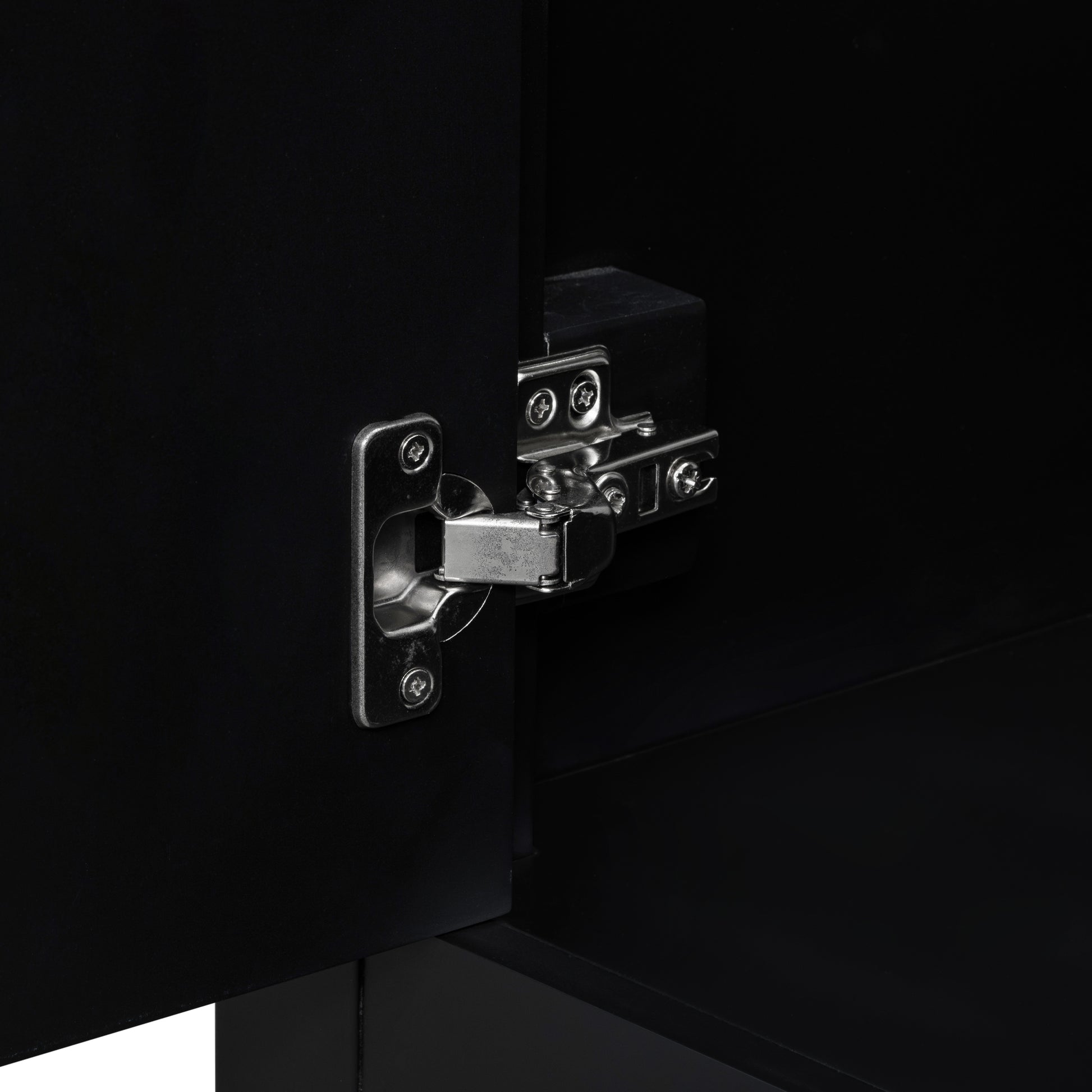 - Sleek Design: The elegant black finish and silver handles create a sophisticated look that complements any bathroom decor. The unique groove design on the doors and drawers adds a touch of artistry to your space.