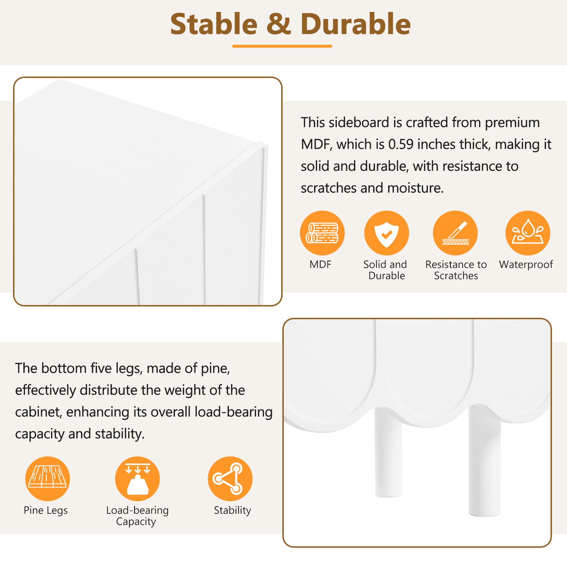 Elevate your space with the ON-TREND Cream Style Minimalist Shoe Cabinet with 5 Solid Wood Legs. This crisp white sideboard blends clean lines with a distinctive wave-door front, delivering a contemporary storage solution that’s as versatile as your lifestyle.