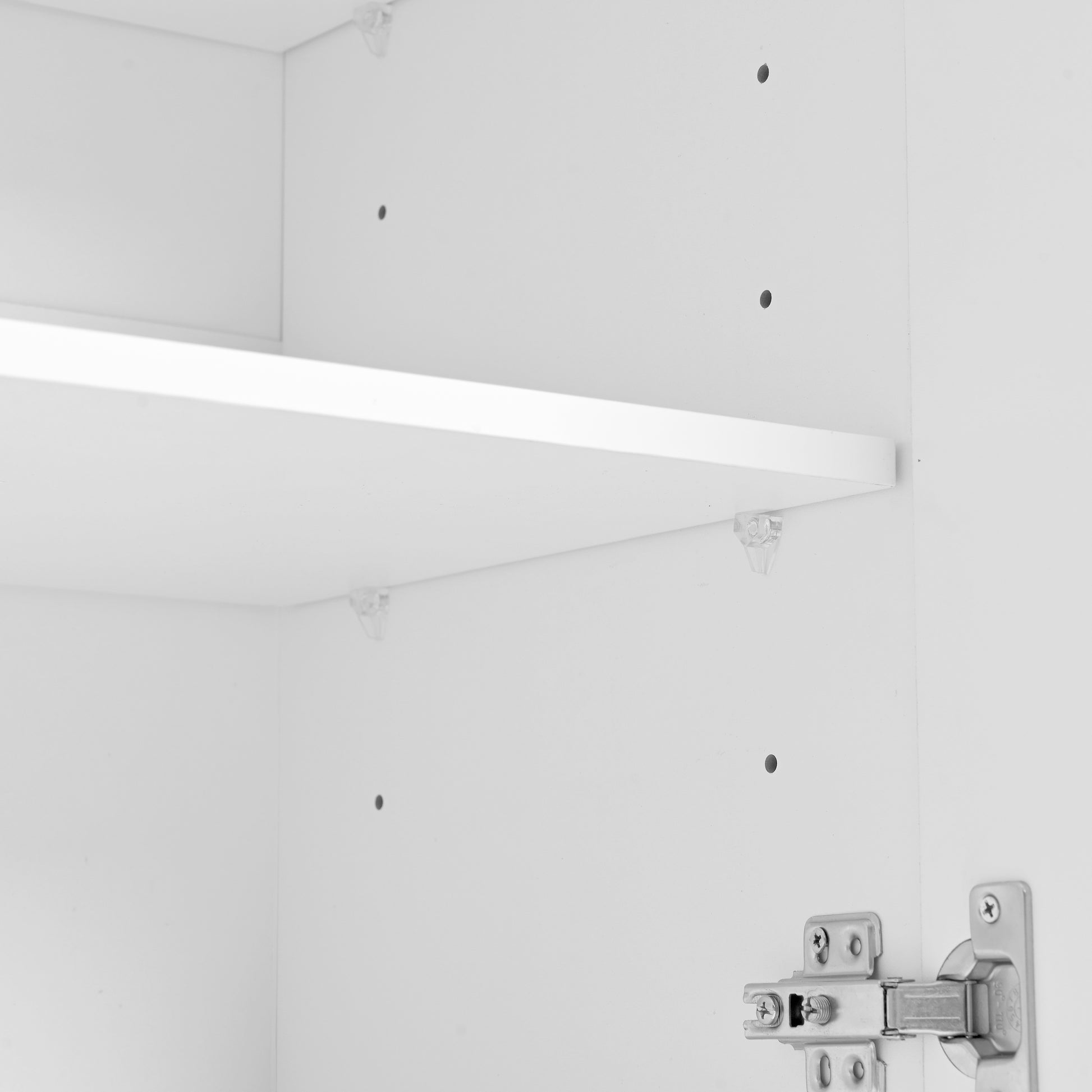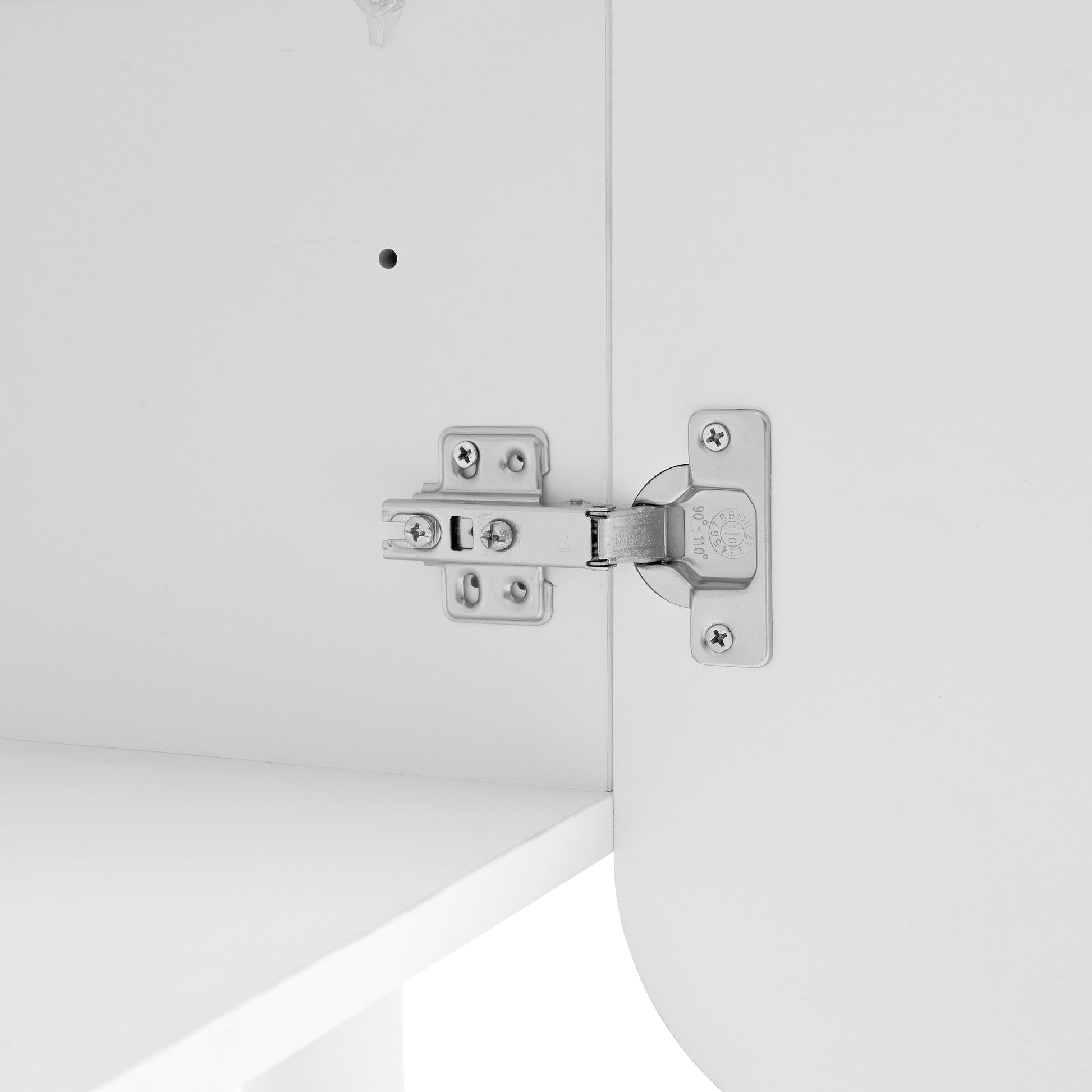 - Durable construction uses 0.59-inch-thick MDF with a moisture- and scratch-resistant finish in a pristine white.