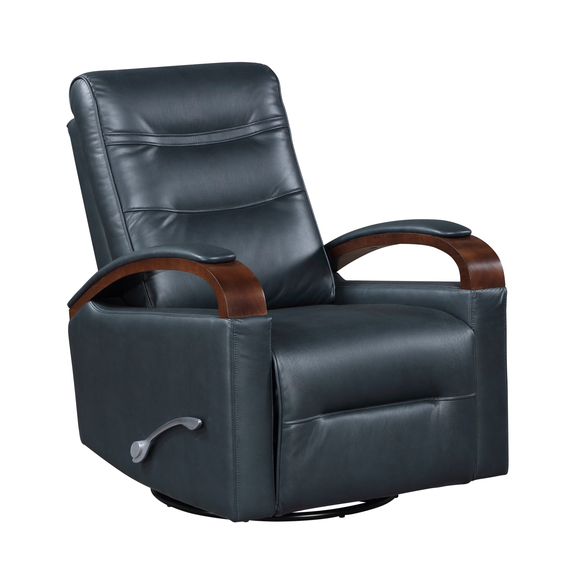 Swivel Gliding Recliner with Faux Leather Upholstery, Solid Rubberwood Arms, 300lb Capacity Navy