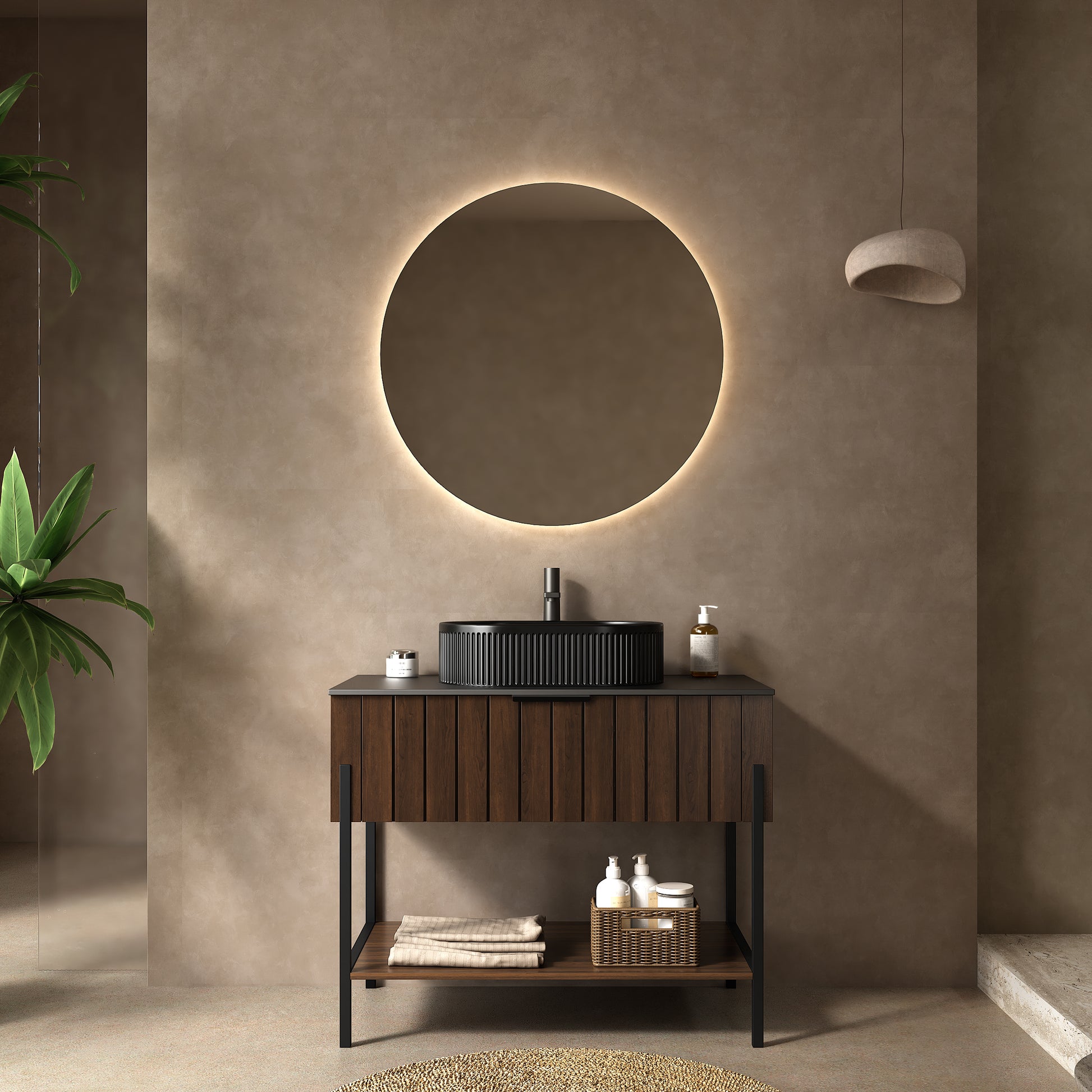 Elevate your bathroom experience with the stylish and functional Modern ZENO 36" Freestanding Bathroom Vanity. This stunning vanity combines a sleek black ceramic vessel sink with a striking dark walnut storage cabinet, making it the perfect centerpiece for any modern bathroom.