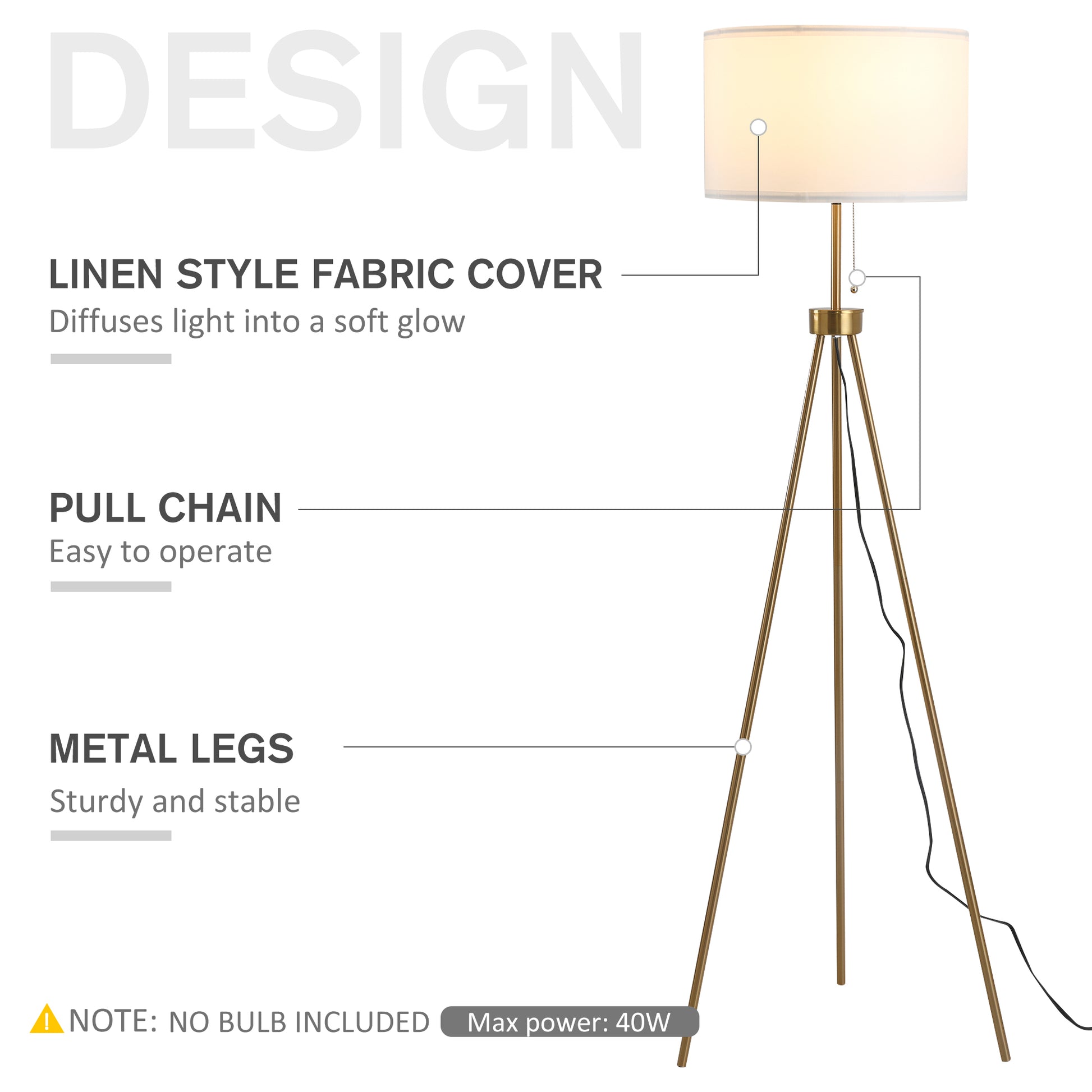 59.75-Inch Standing Floor Lamp with Fabric Shade, Steel Tripod, E26 Socket, 14.5-Inch Shade, 120V Gold