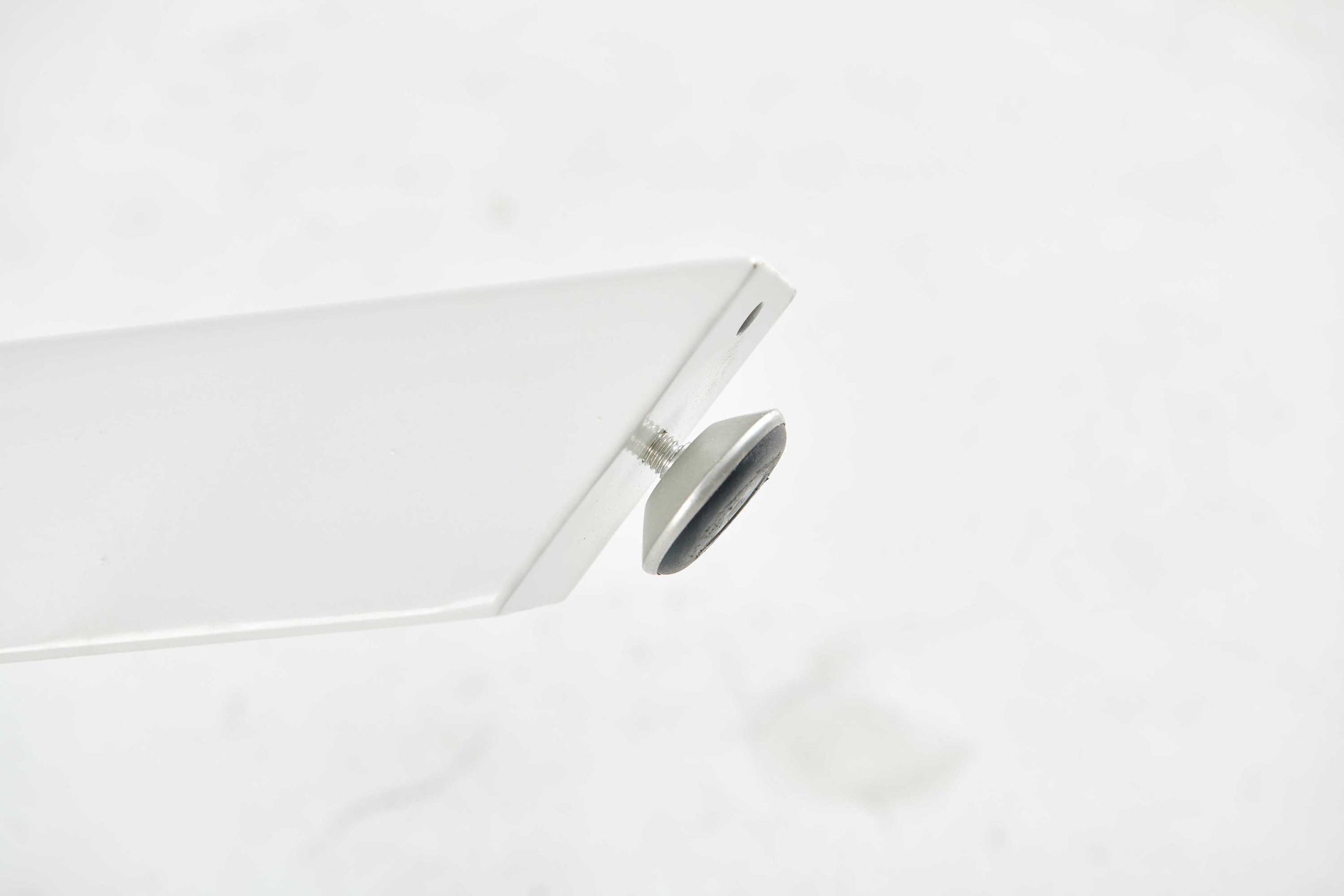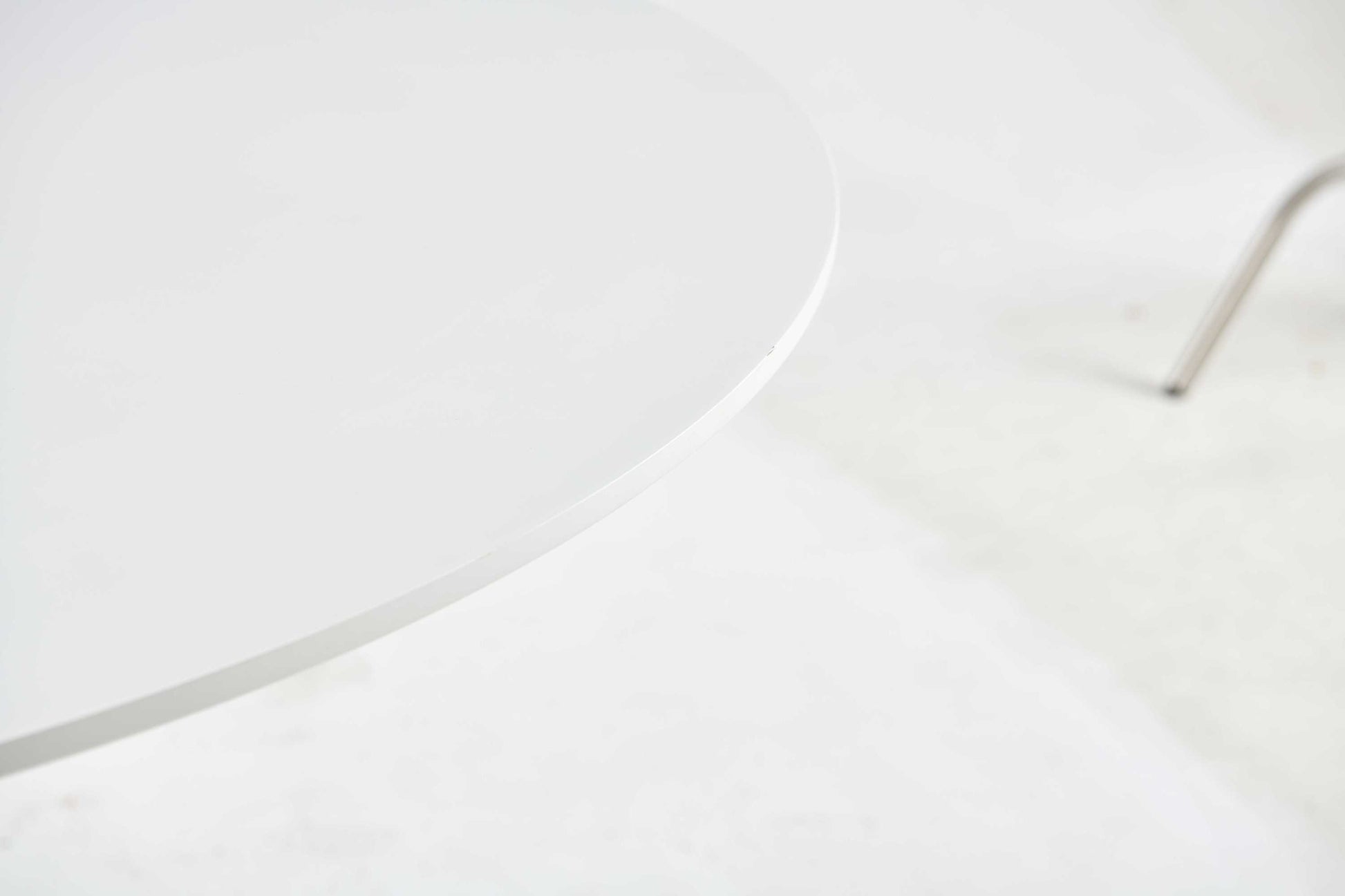 - Round MDF tabletop in a crisp white finish