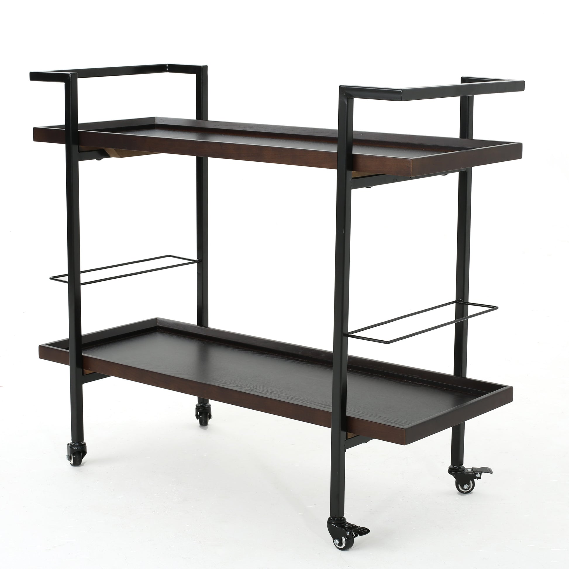 Elevate your entertaining with a chic, functional centerpiece that blends warm walnut tones with clean industrial lines. This rolling bar cart is designed to move with you, making it easy to serve guests and reposition for conversations.