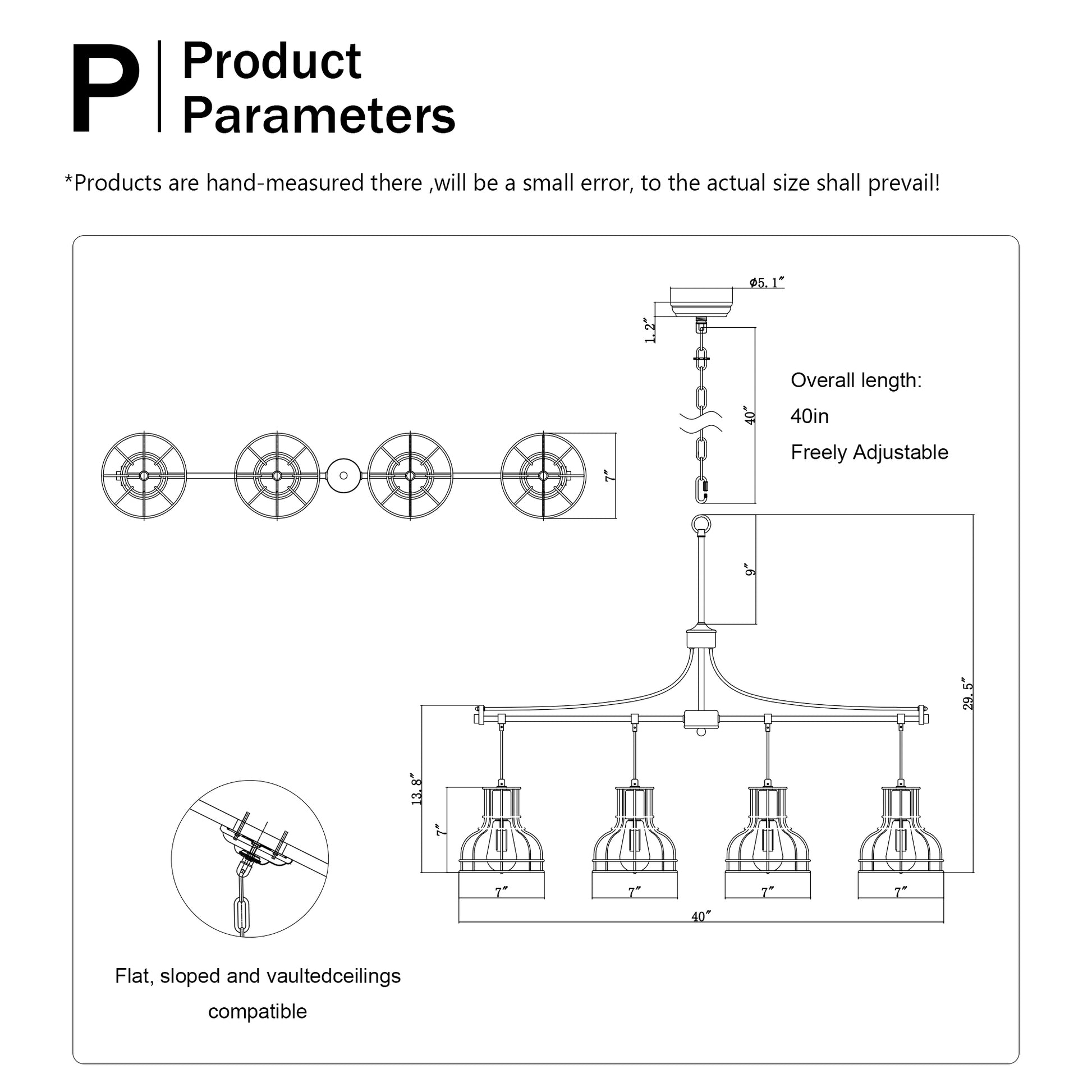 Adjustable height ensures a perfect hang over your space. Includes one chain measuring 39.37 inches, providing a maximum overall height of up to 70 inches to suit high ceilings, kitchen islands, or entryways.