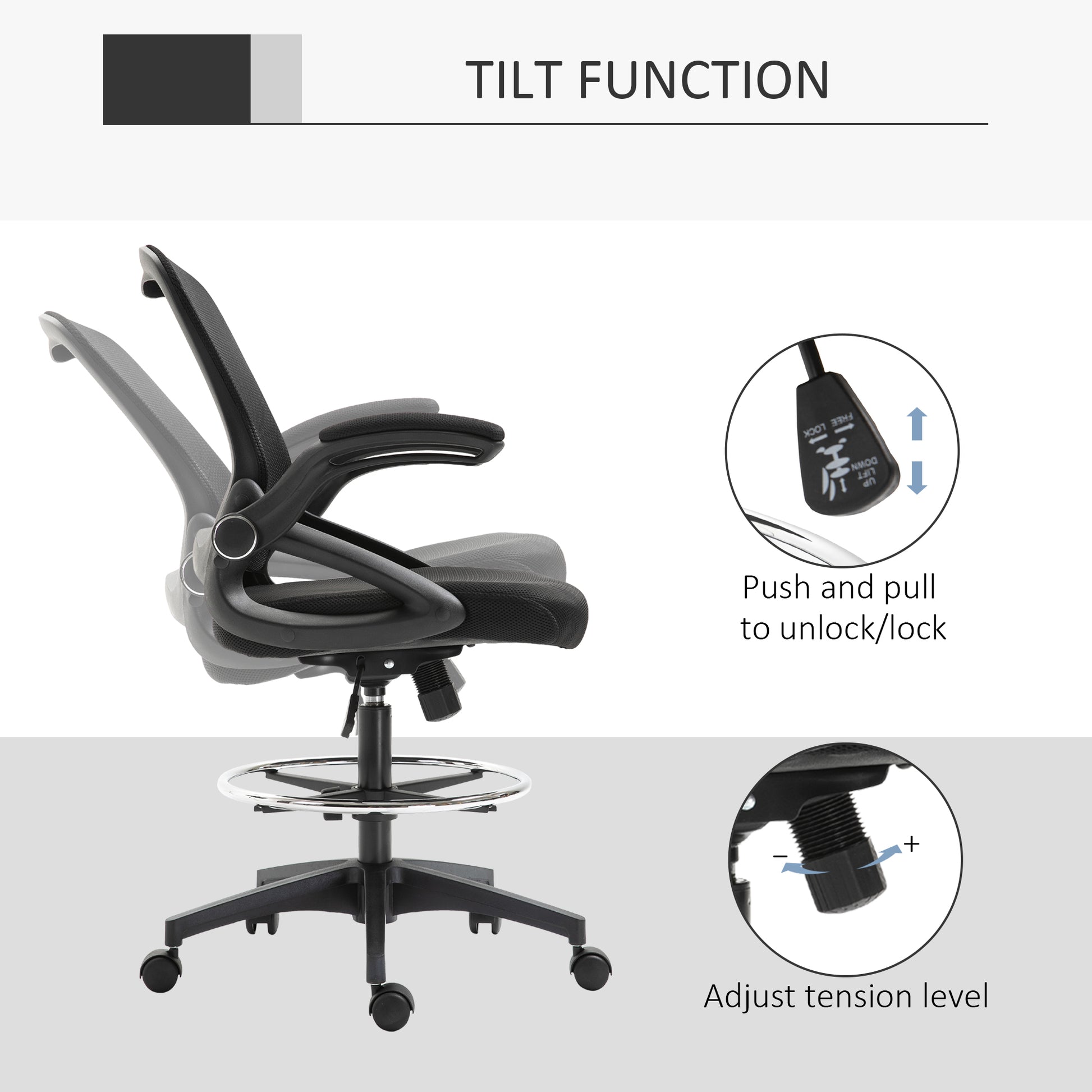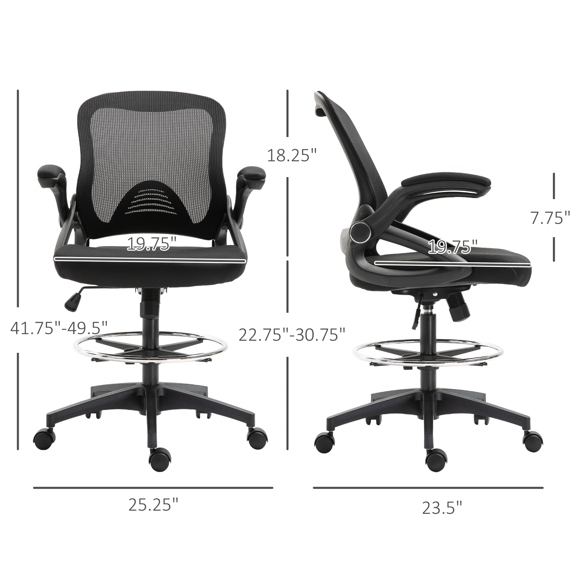 Adjustable Tall Mesh Drafting Chair with Lumbar Support, Flip-Up Armrests, and Footrest Ring in Black