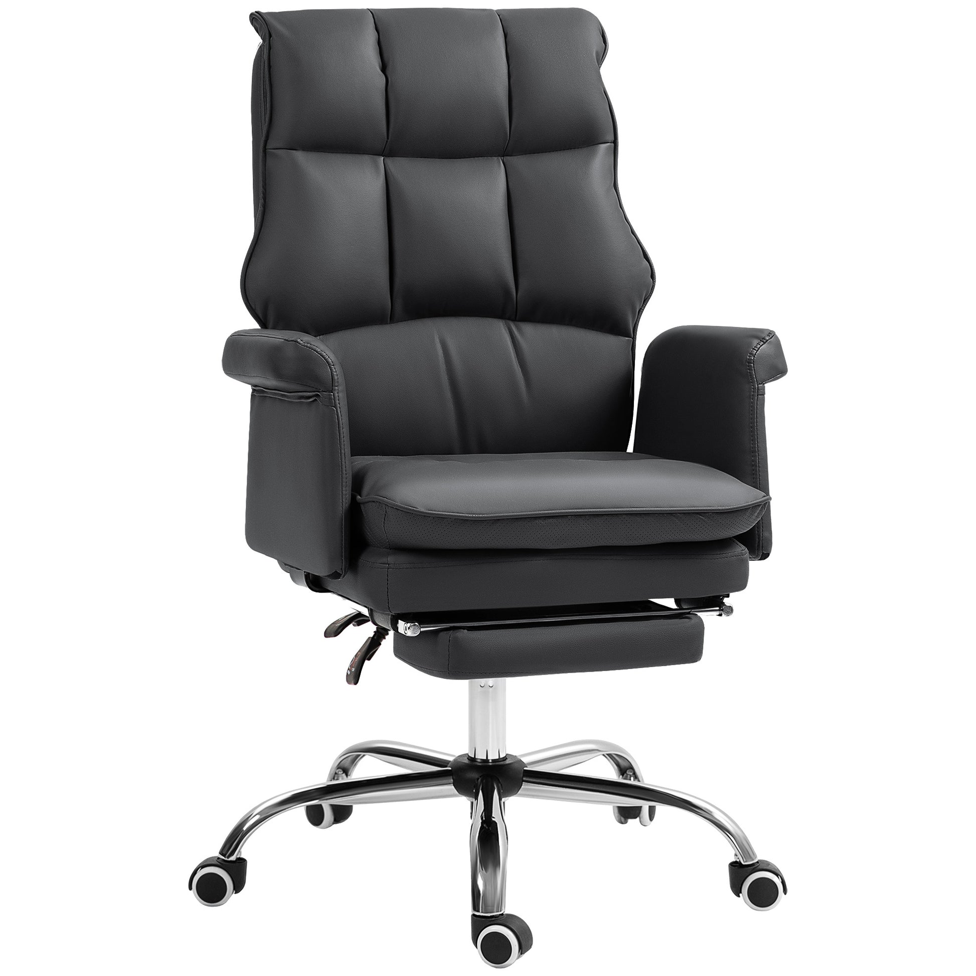 Ergonomic Black PU Leather Executive Office Chair with Footrest and Reclining Function