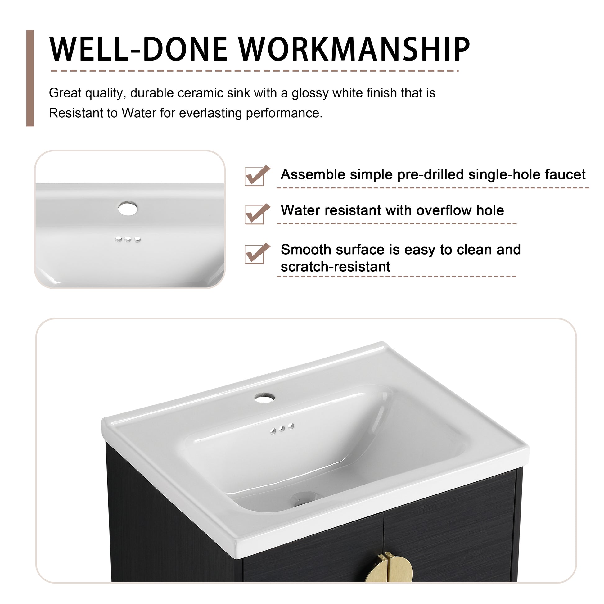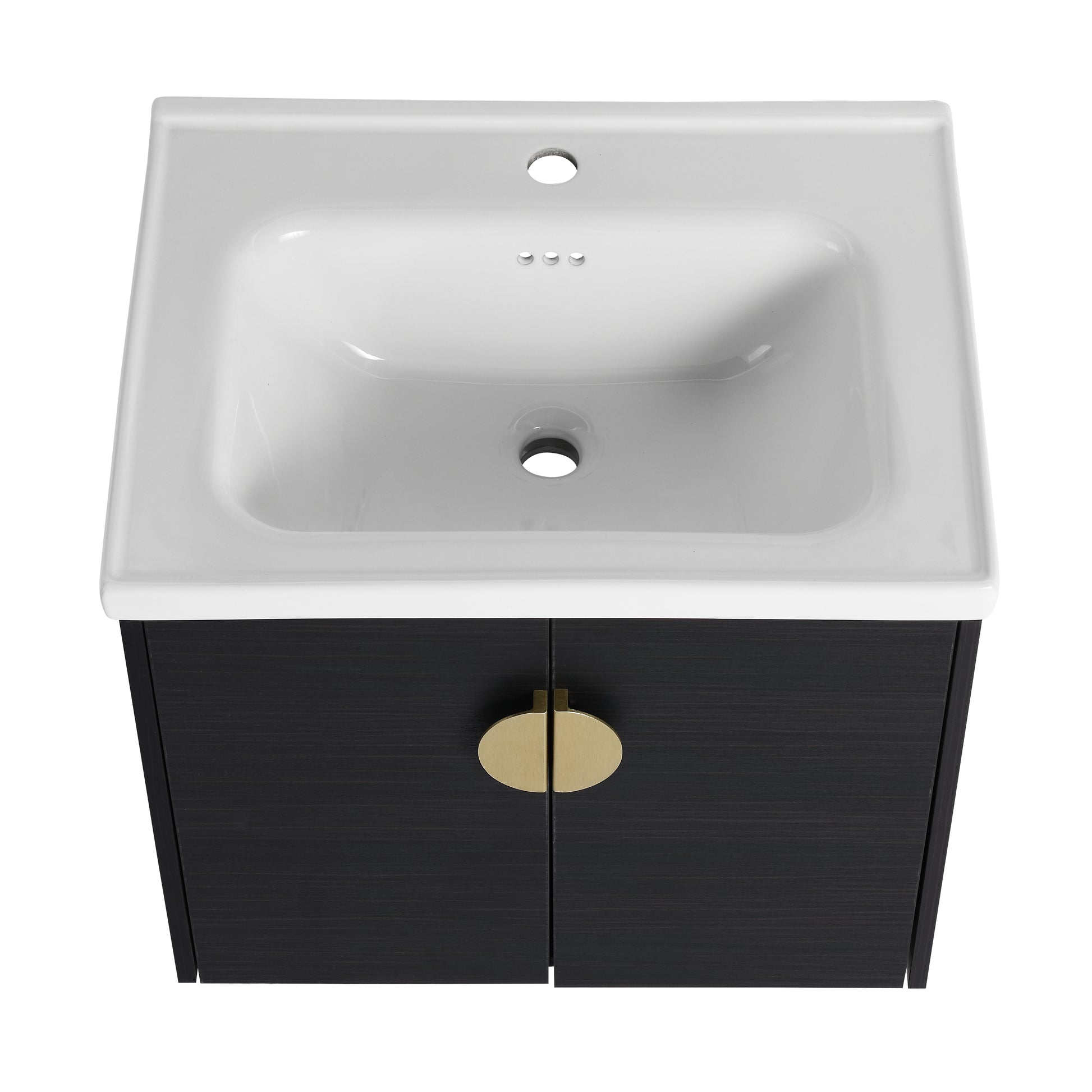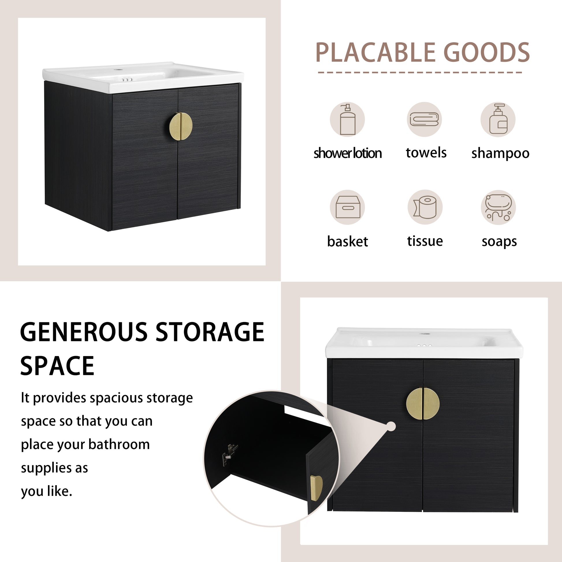 60 Inch Wall-Mounted Bathroom Vanity with Soft Close Doors and Ceramic Sink, Includes Small Storage Shelves - BVC06360BCT