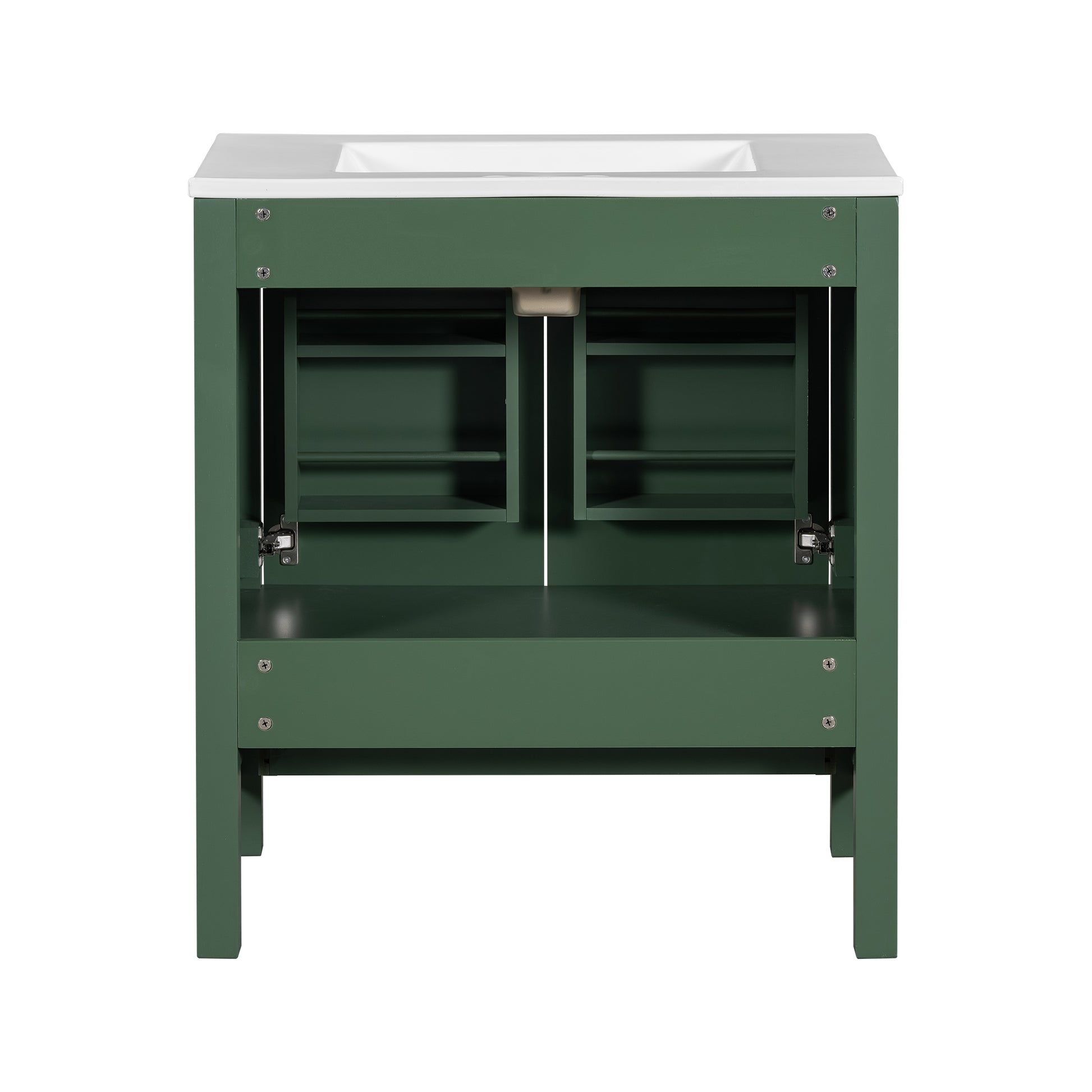 30" Elegant Green Bathroom Storage Vanity with Integrated Undermount Sink and Soft-Close Features