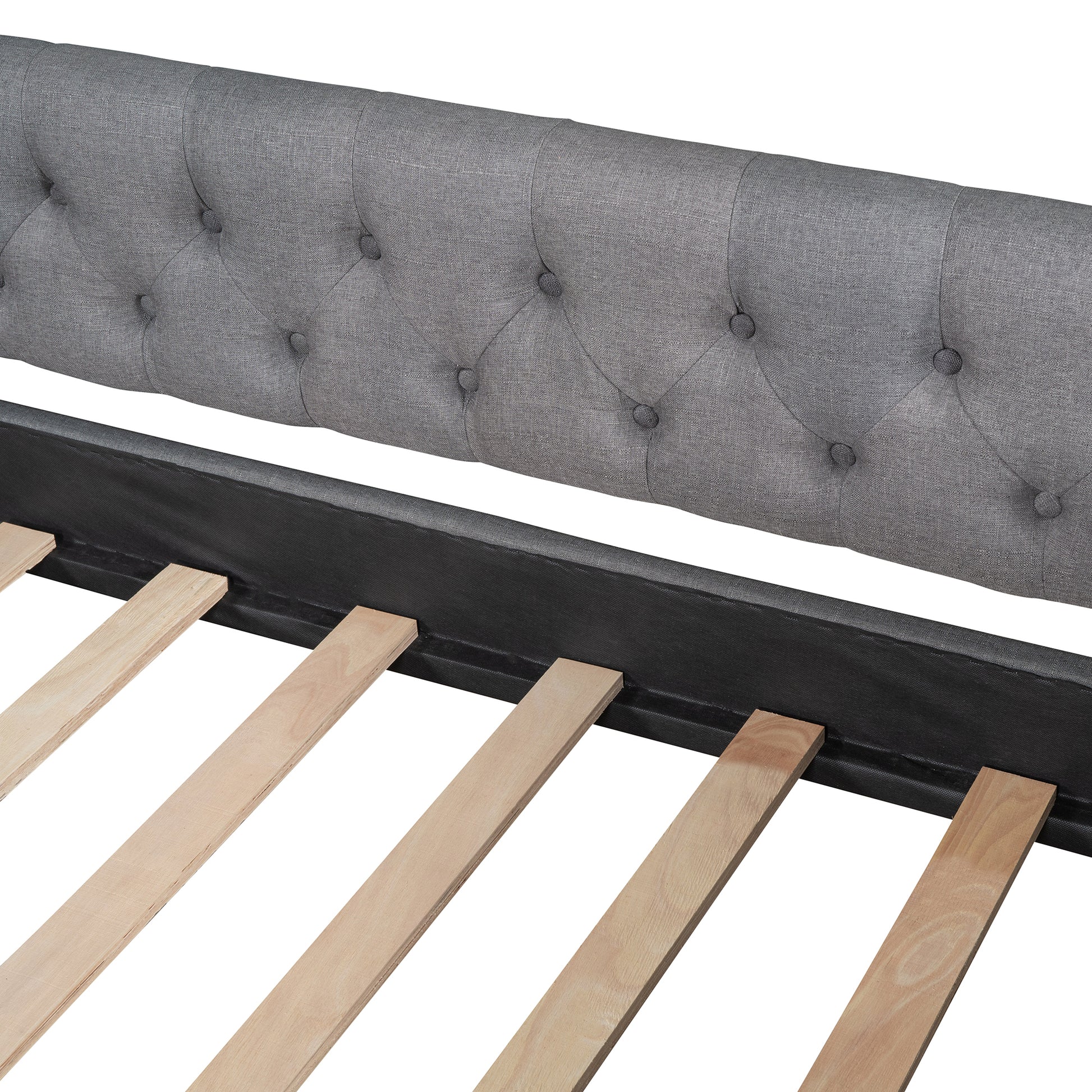 - Elegant Design: Upholstered in premium gray linen fabric, this daybed boasts a diamond-tufted backrest and stylish armrests adorned with rivets, making it a stunning addition to your home décor.