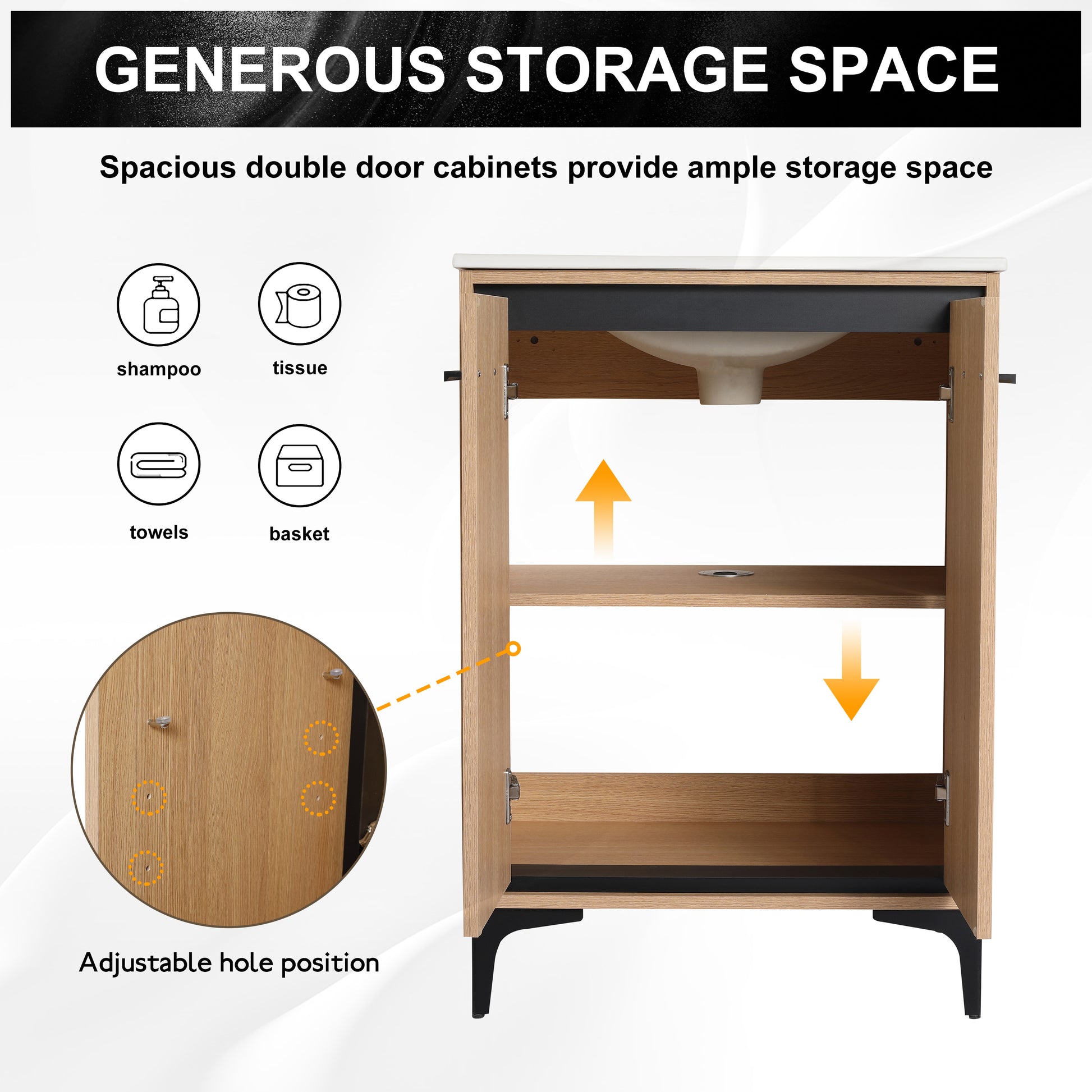 - Ample Storage Space: The double door cabinet design offers generous storage, effectively keeping your bathroom essentials organized, dry, and free from dust. The space-saving features ensure you have room for everything you need.