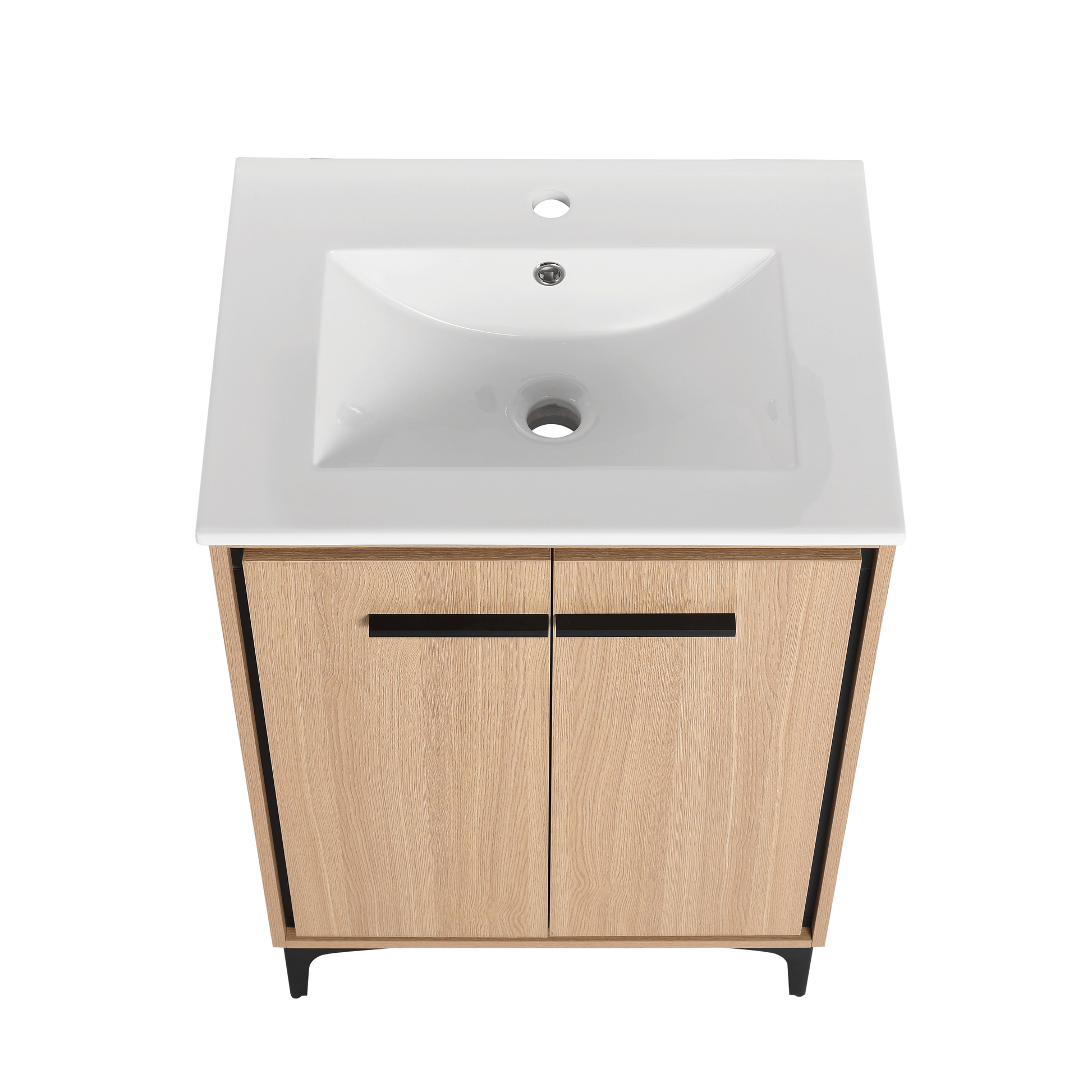 24-Inch Oak Bathroom Vanity with Ceramic Basin and Storage Cabinet