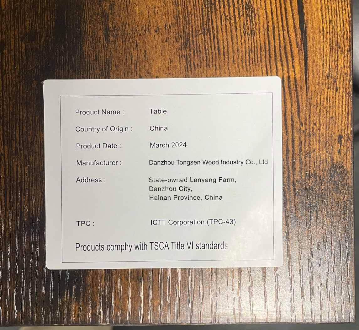 - Tabletop: Particleboard