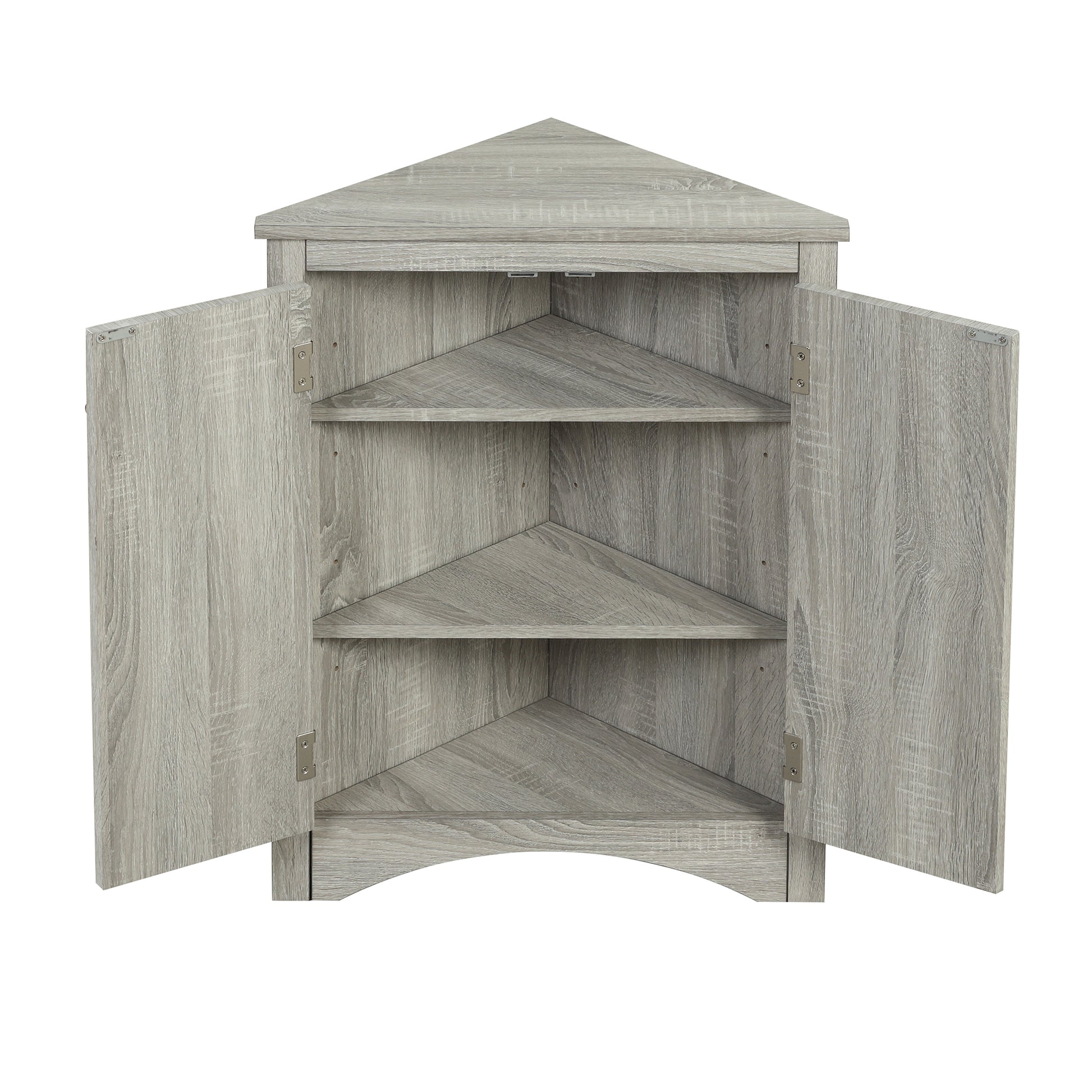 Stylish Oak Triangle Corner Storage Cabinet with Adjustable Shelves for Home and Kitchen Use
