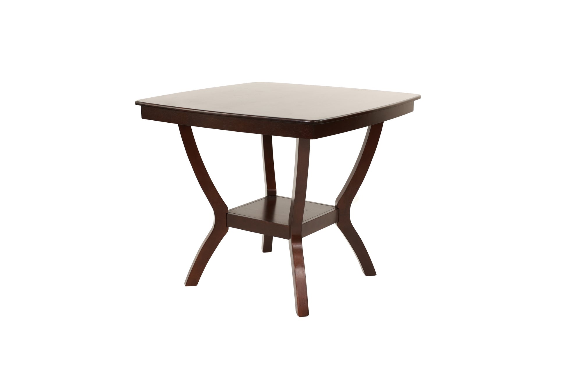 Elevate your dining space with this counter-height dining table, crafted in a rich espresso finish from solid rubberwood. This 1-piece table with a built-in shelf blends classic warmth with contemporary design for a versatile centerpiece in any dining room or kitchen nook.