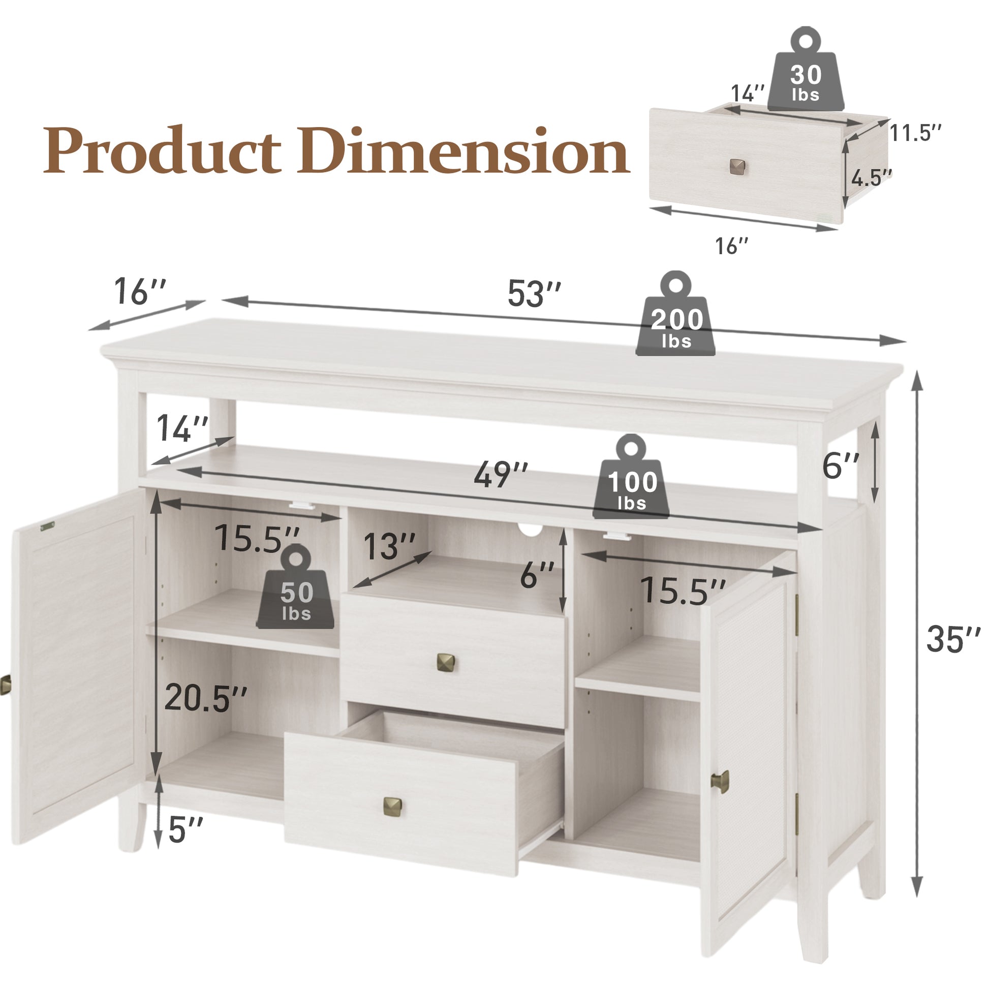 52.8" Rattan Sideboard, Boho Farmhouse Storage Cabinet with Adjustable Shelves, Accent Buffet Cabinet for Kitchen