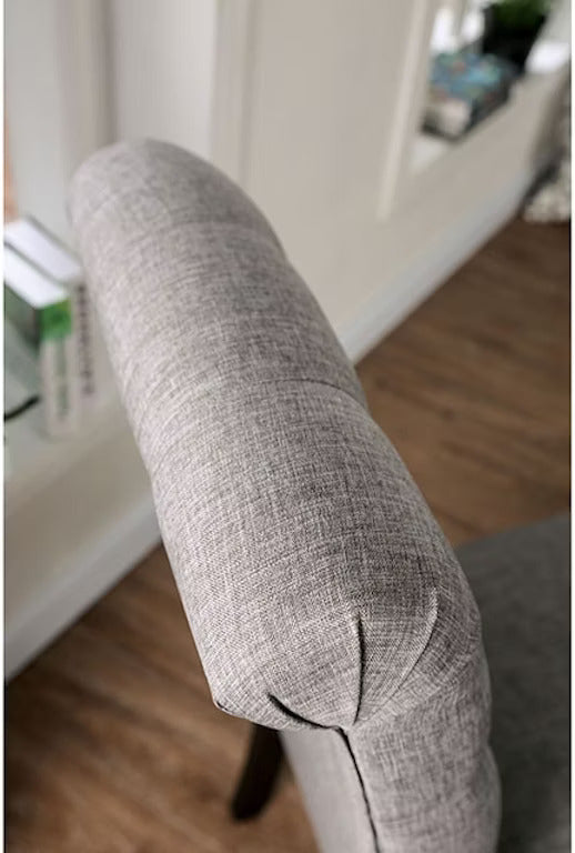 Set of 2 Dining Room Side Chairs, Button-Tufted Linen Upholstery, Solid Wood, Rustic Style, Light Gray