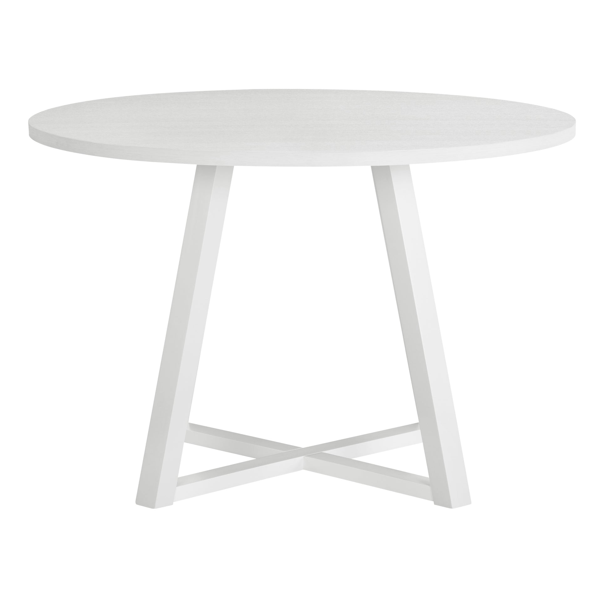 Designed for durability, the Edo table combines solid wood with MDF for a smooth, long-lasting surface. Crafted from rubberwood, it offers a sturdy, reliable foundation that maintains its pristine white hue through daily use. The 45-inch diameter provides ample room for a comfortable seating arrangement of 4–6 guests, making it ideal for dining rooms, kitchens, or flexible open-concept living areas.