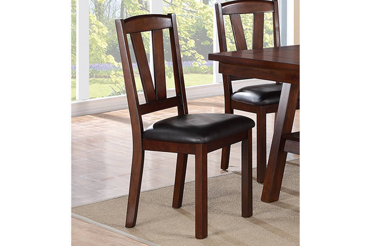 Set of 2 Dining Chairs, Solid Wood Rubberwood, Faux Leather Cushions, V-Back, 18x21x39 Dark Walnut