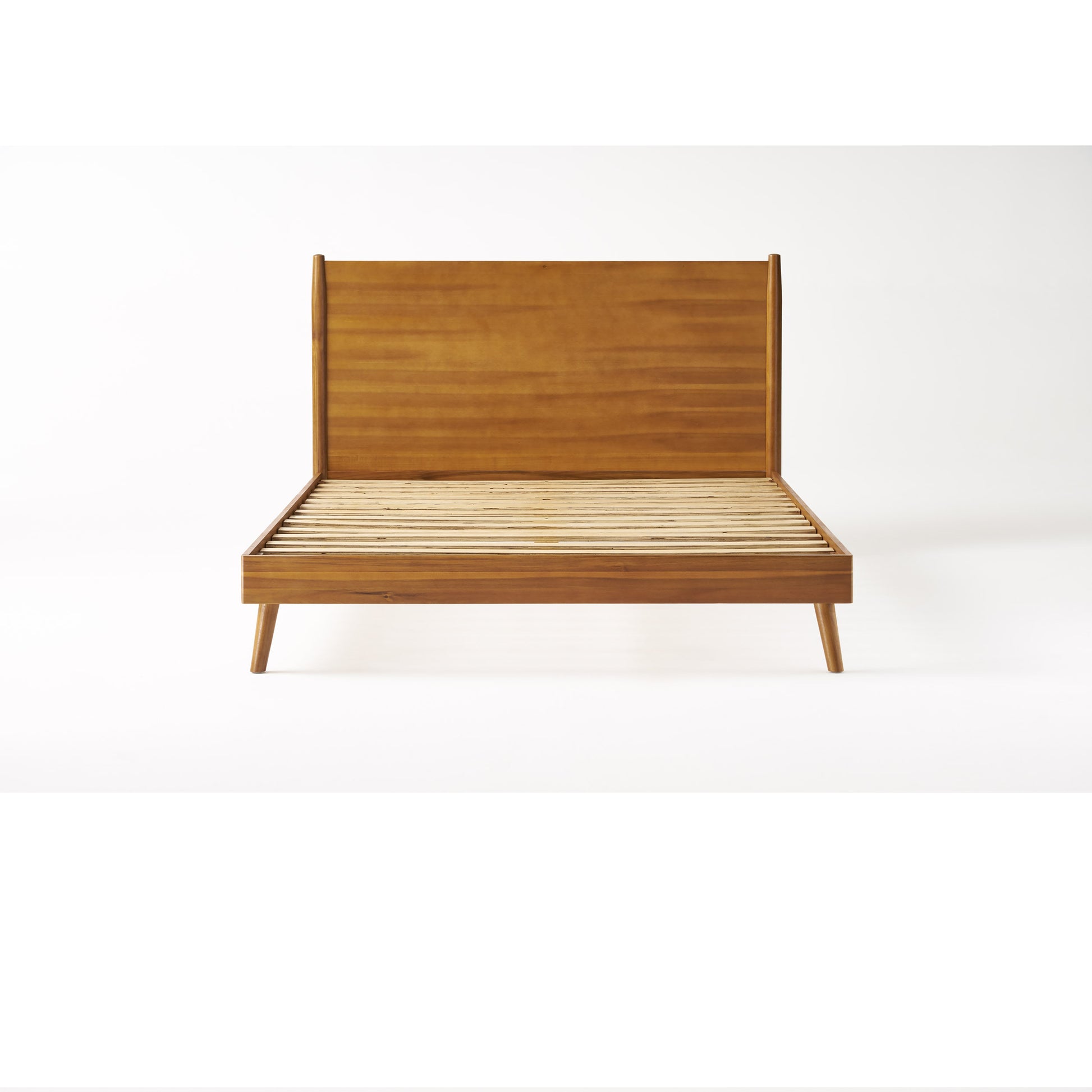 Upgrade your bedroom with a timeless mid-century aesthetic crafted from kiln-dried acacia wood. This king bed frame showcases iconic splayed legs and a durable wood foundation, finished in a warm natural tone that complements any decor.