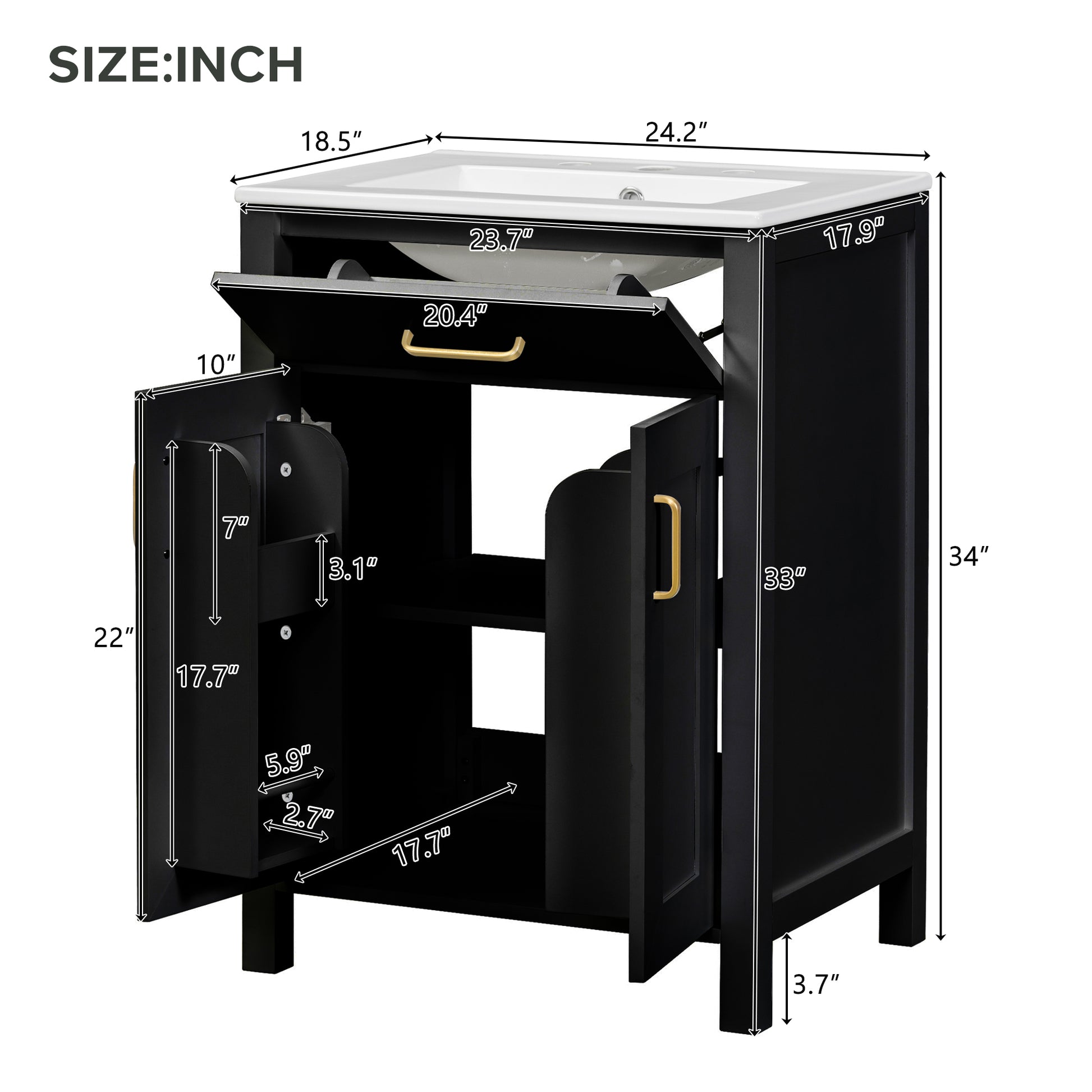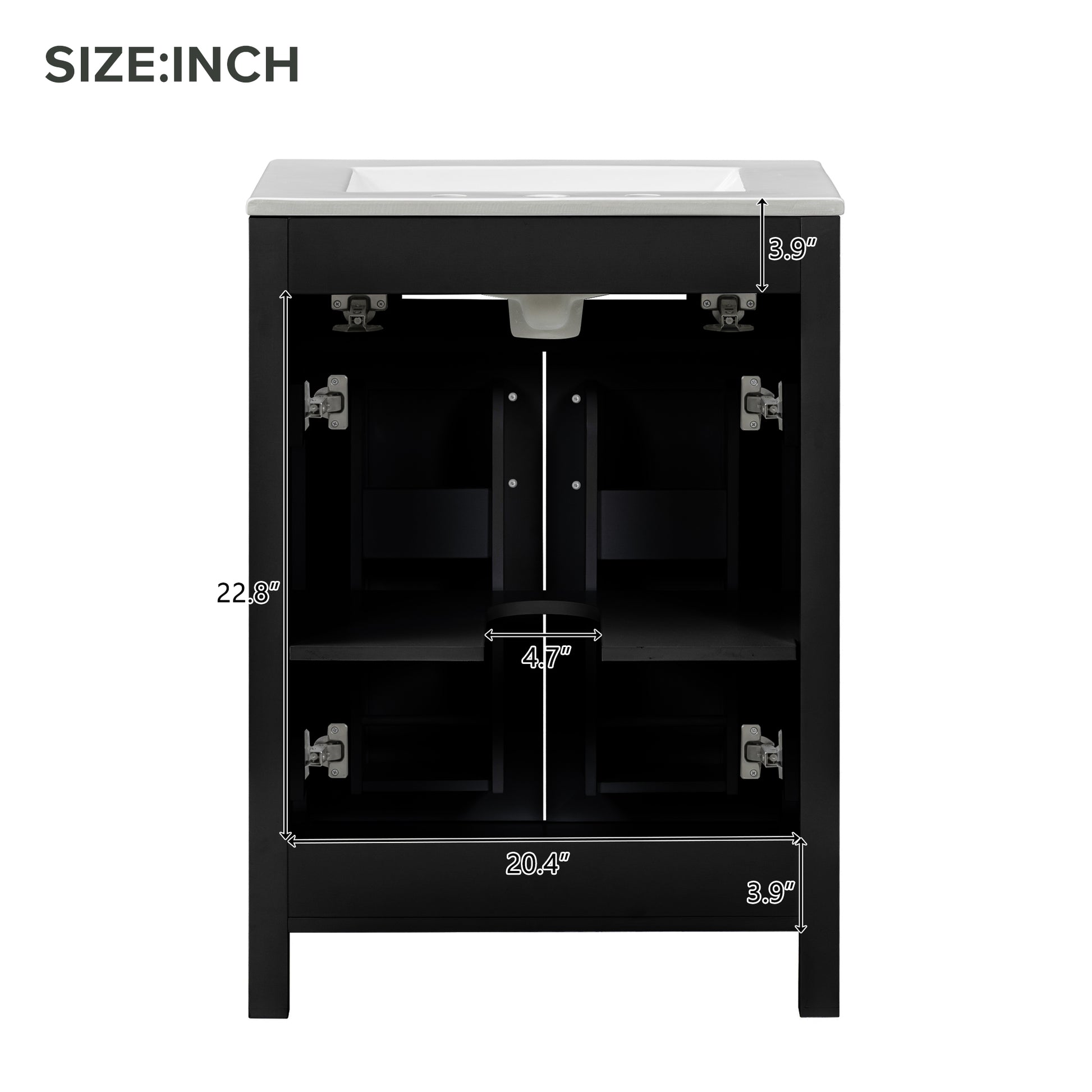 Compact 24" Luxurious Bathroom Vanity Combo with Ceramic Sink and Soft Close Doors