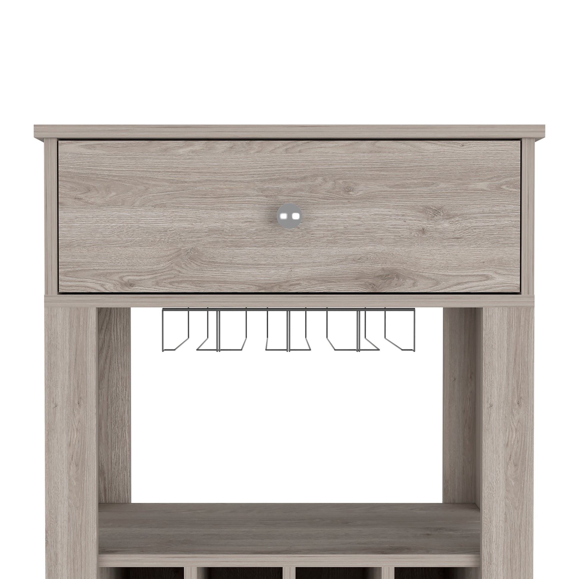 Modern Light Gray Wine Cart With Drawer And Cubbies