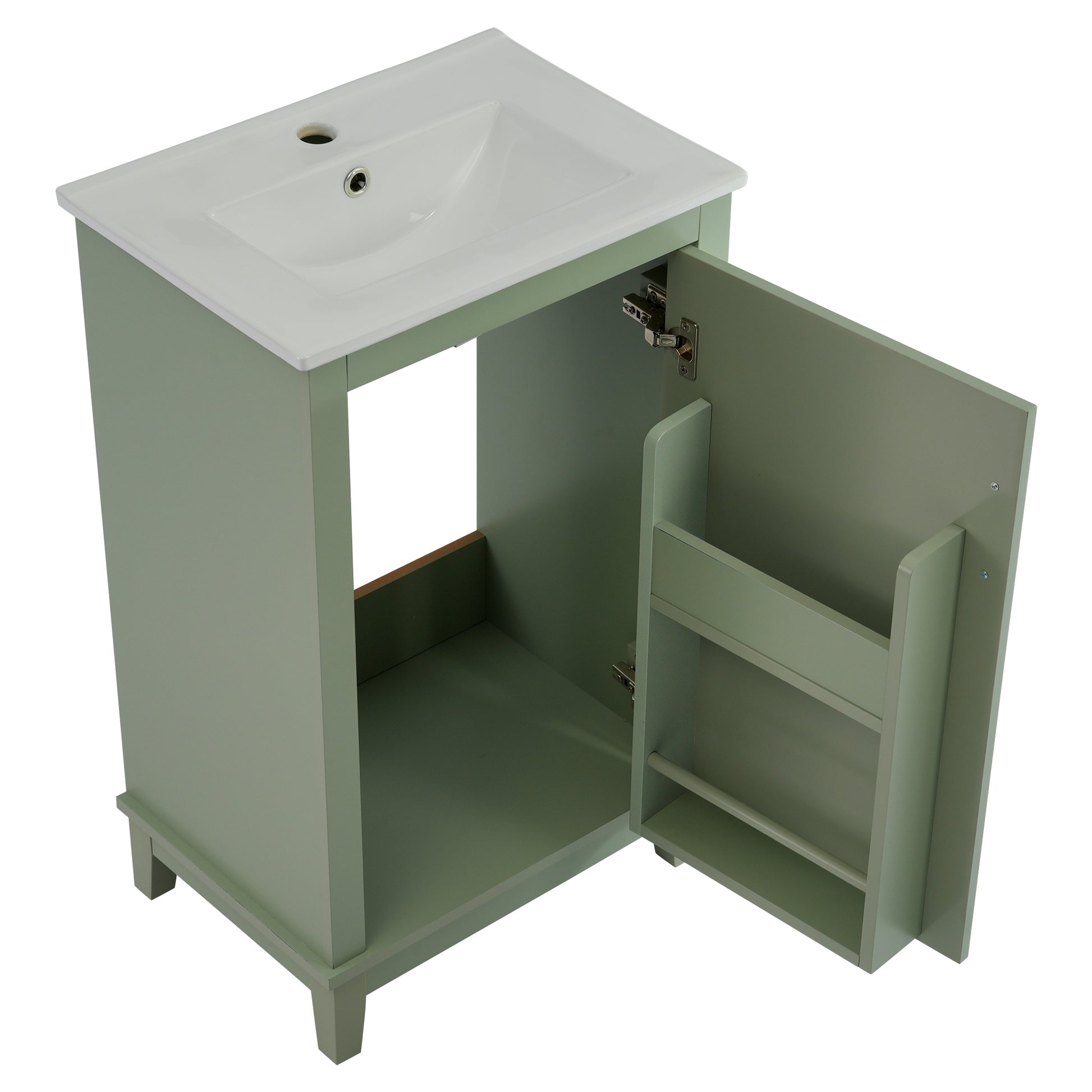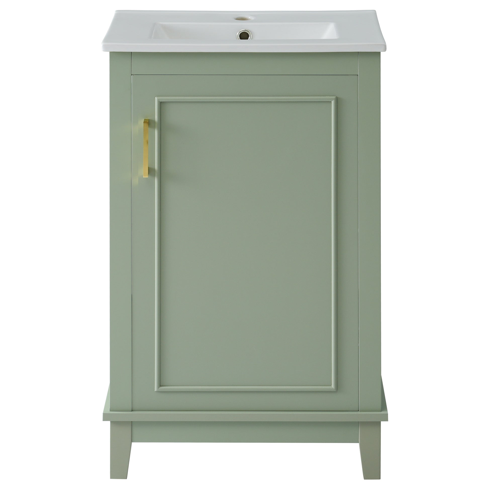 Compact 20-Inch Green Bathroom Vanity Cabinet with Ceramic Sink - Stylish Storage Solution for Small Spaces