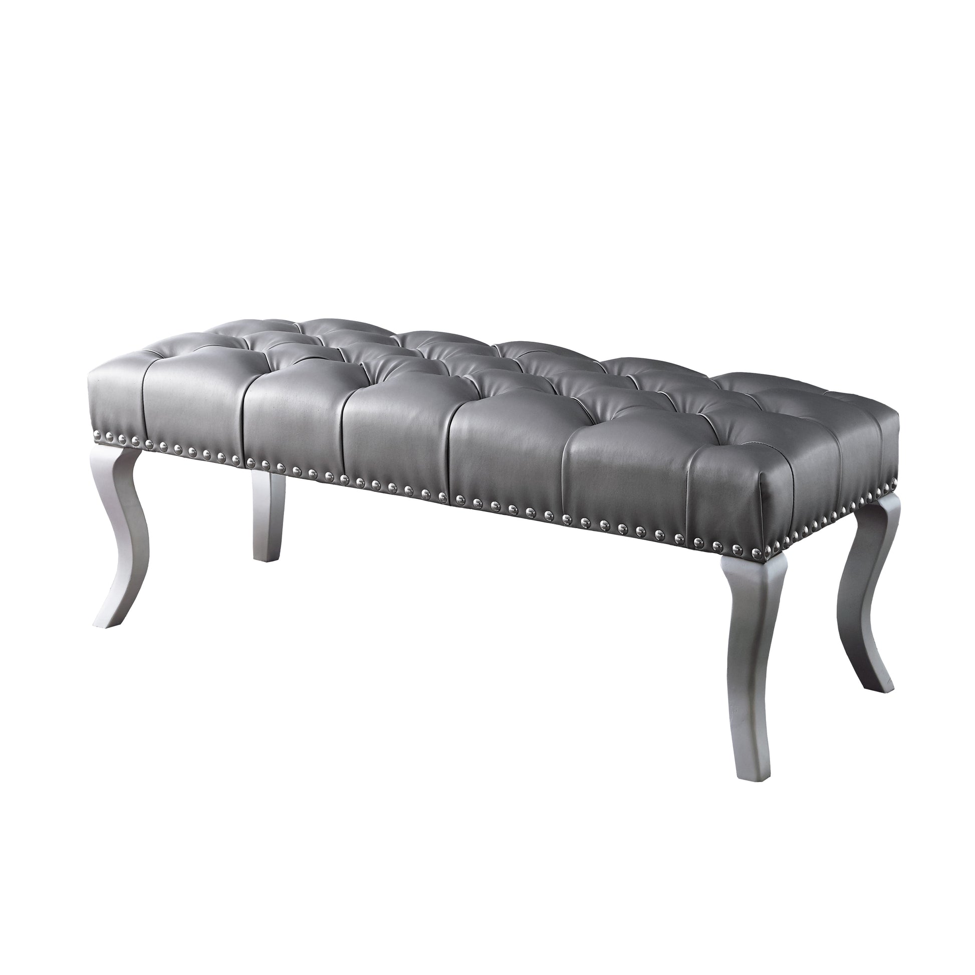 Elevate your space with this luxurious bench that blends classic details with modern versatility. Upholstered in soft champagne fabric, it showcases crystal button tufting and a refined nailhead trim for an elegant statement piece that complements traditional and transitional décor.