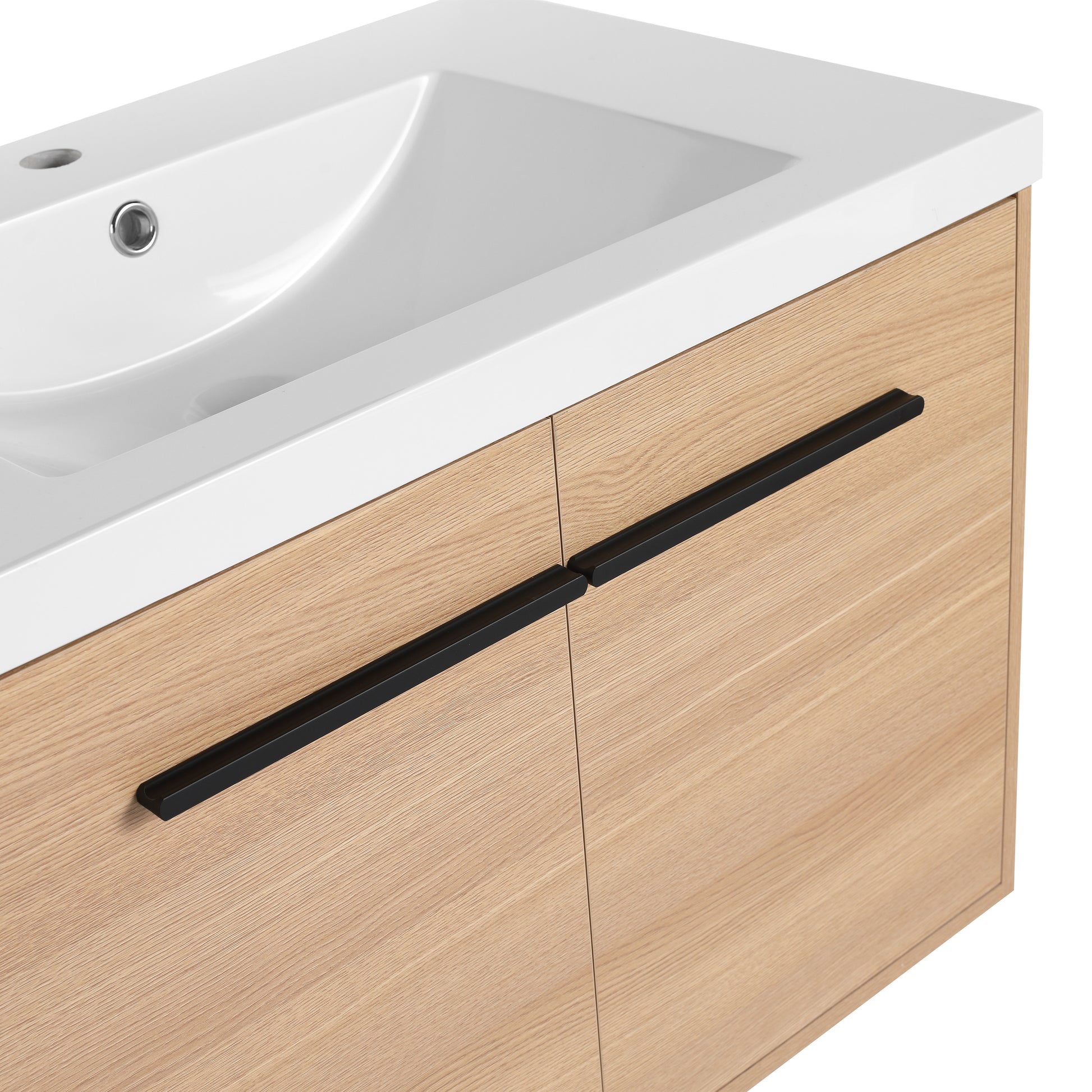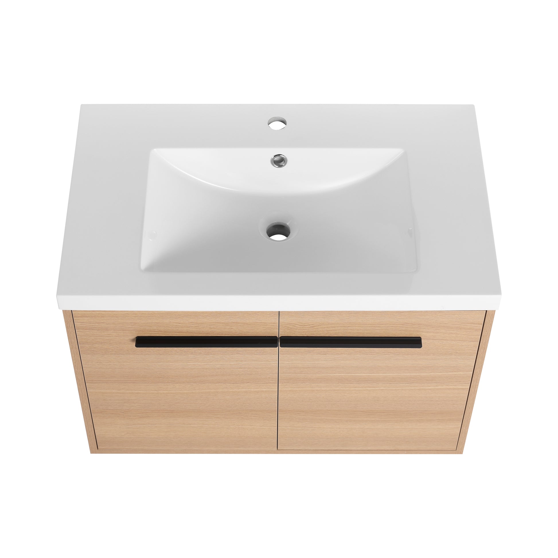 30-Inch Oak Bathroom Vanity Set with Resin Sink and Storage Cabinet