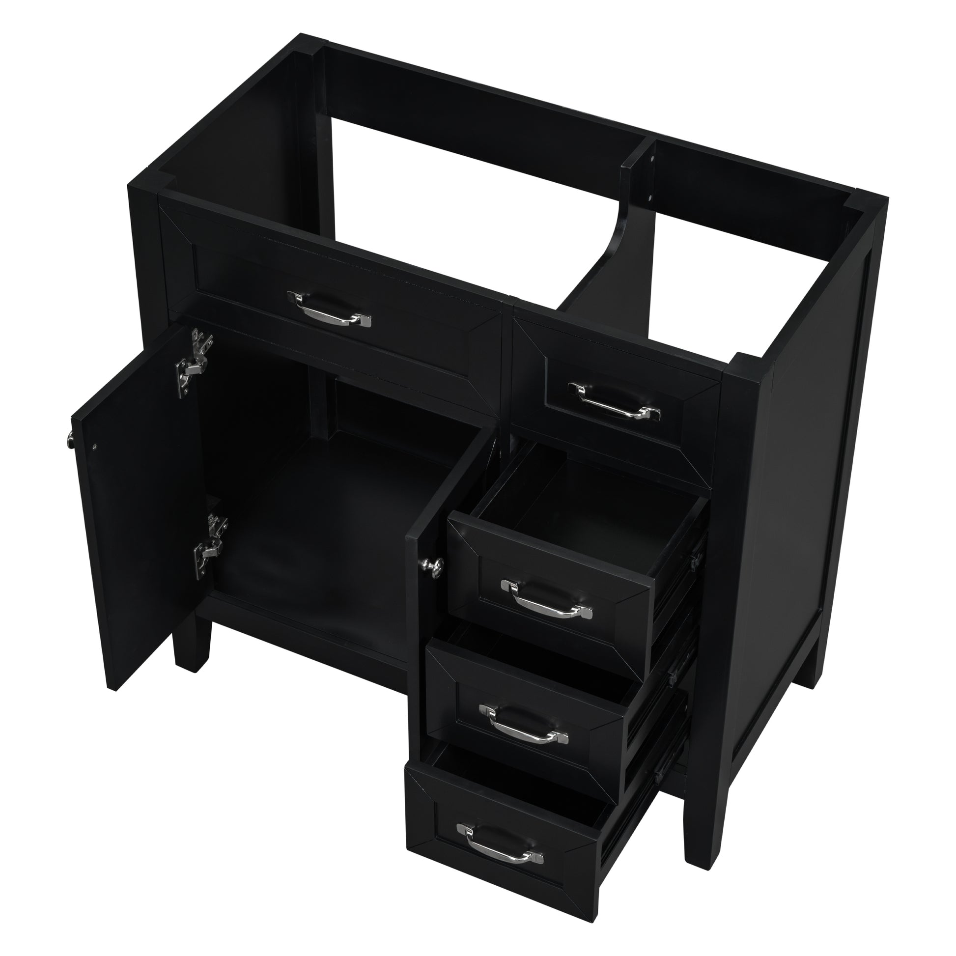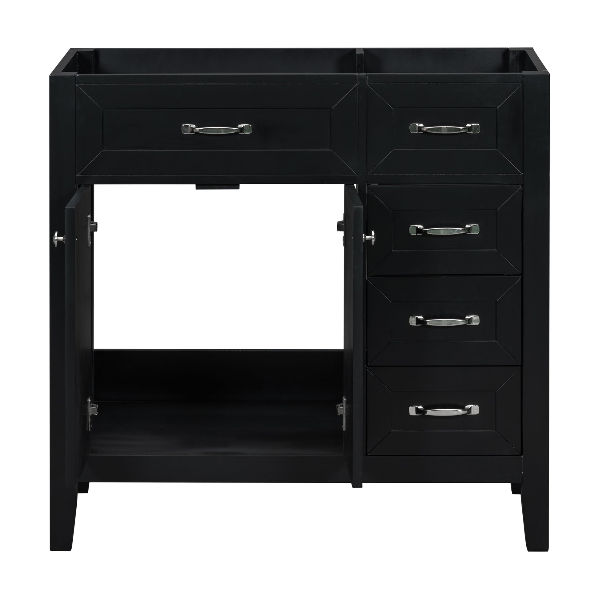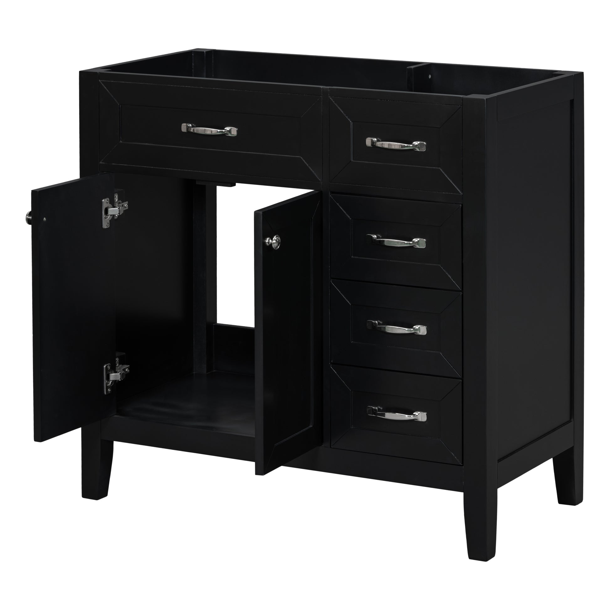 Modern 36" Black Bathroom Vanity Base Cabinet with Drawers, Solid Wood & MDF Construction