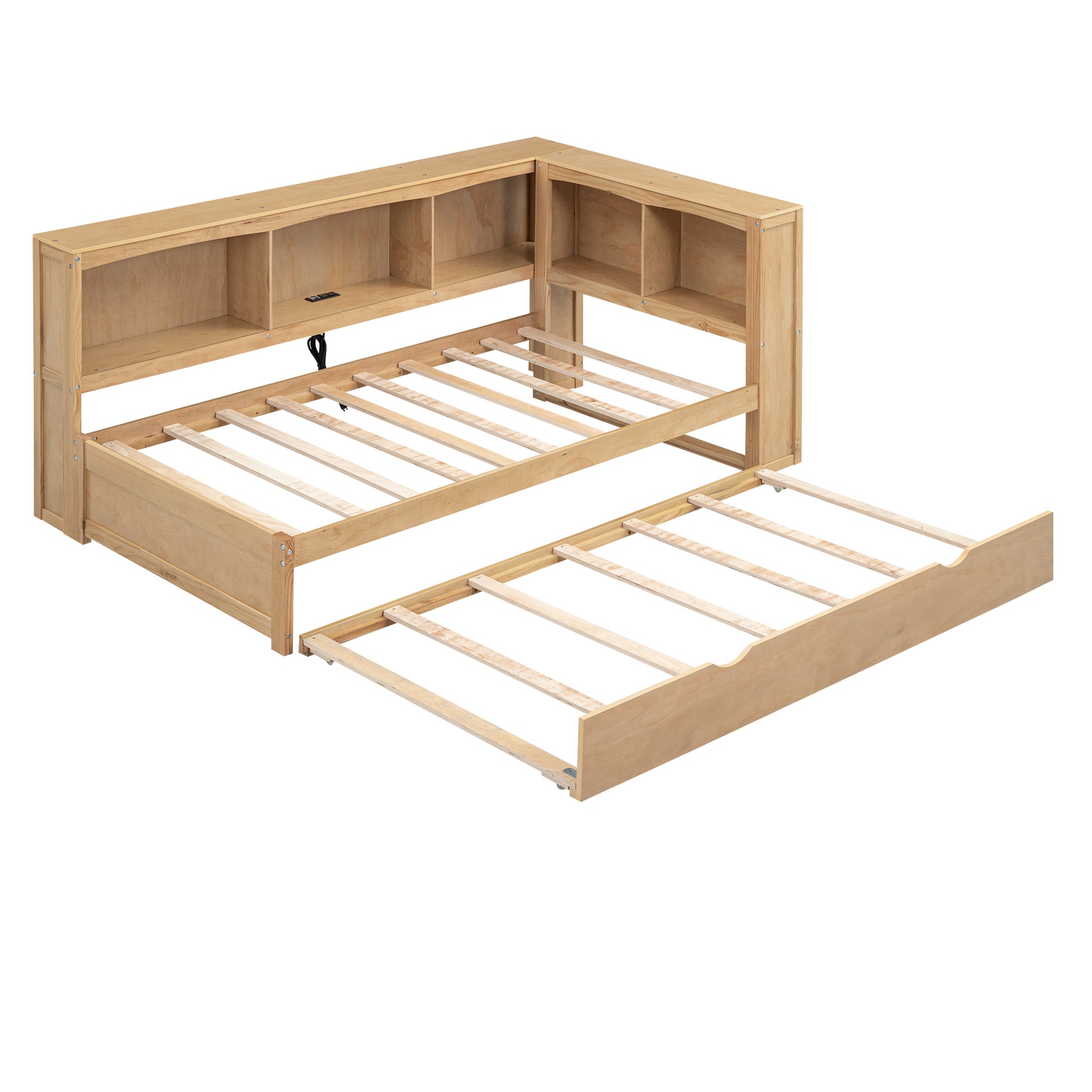 Twin Size Wooden Daybed with Trundle, Built-in Storage, and USB Charging Ports