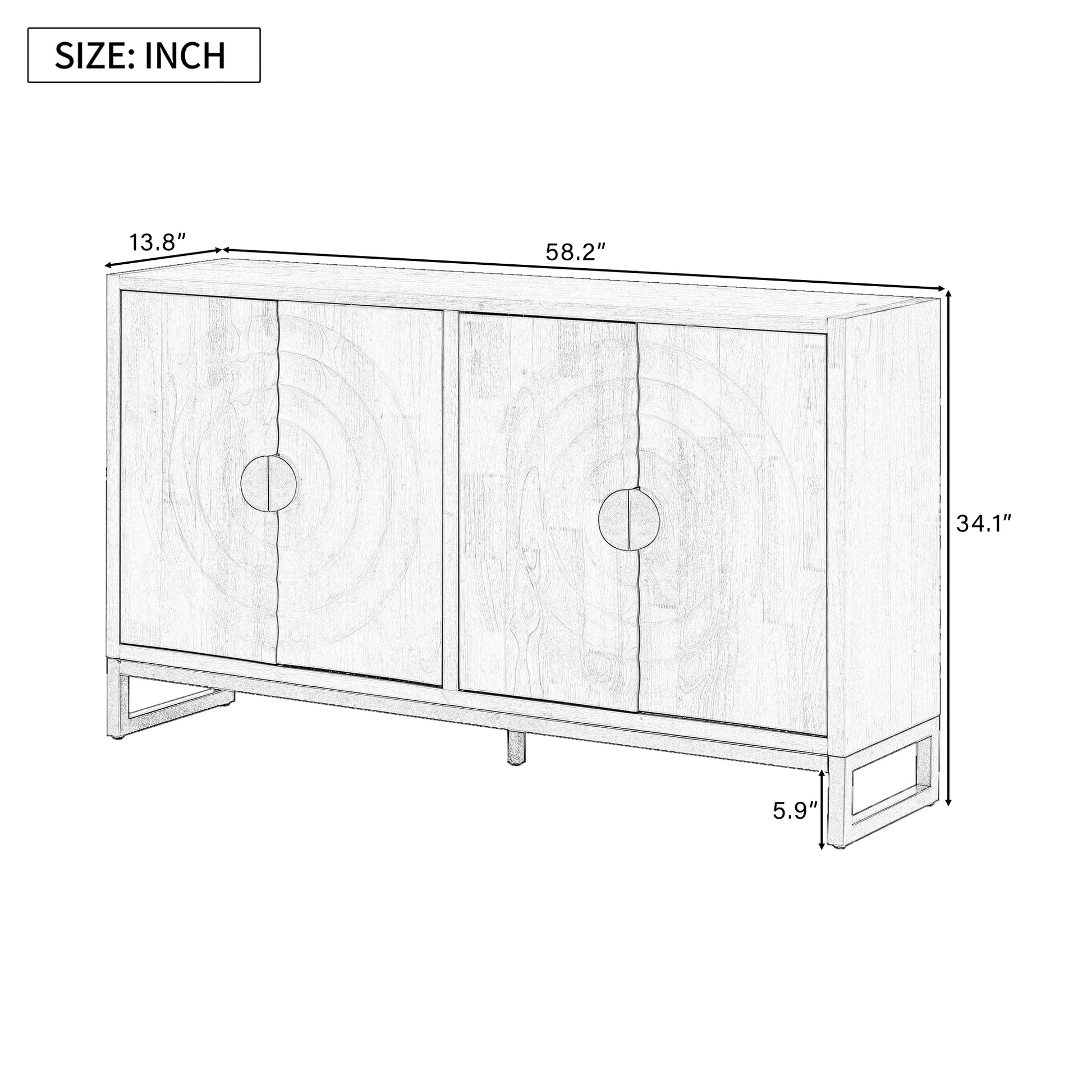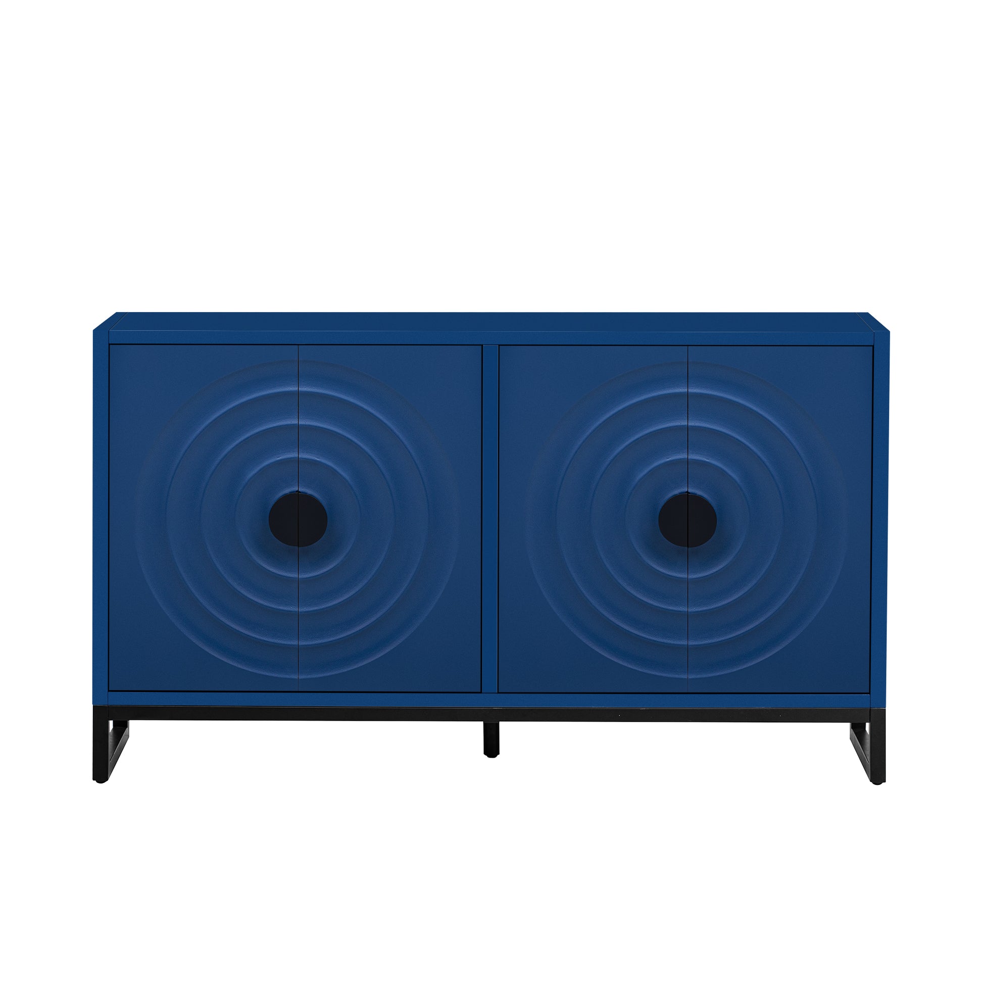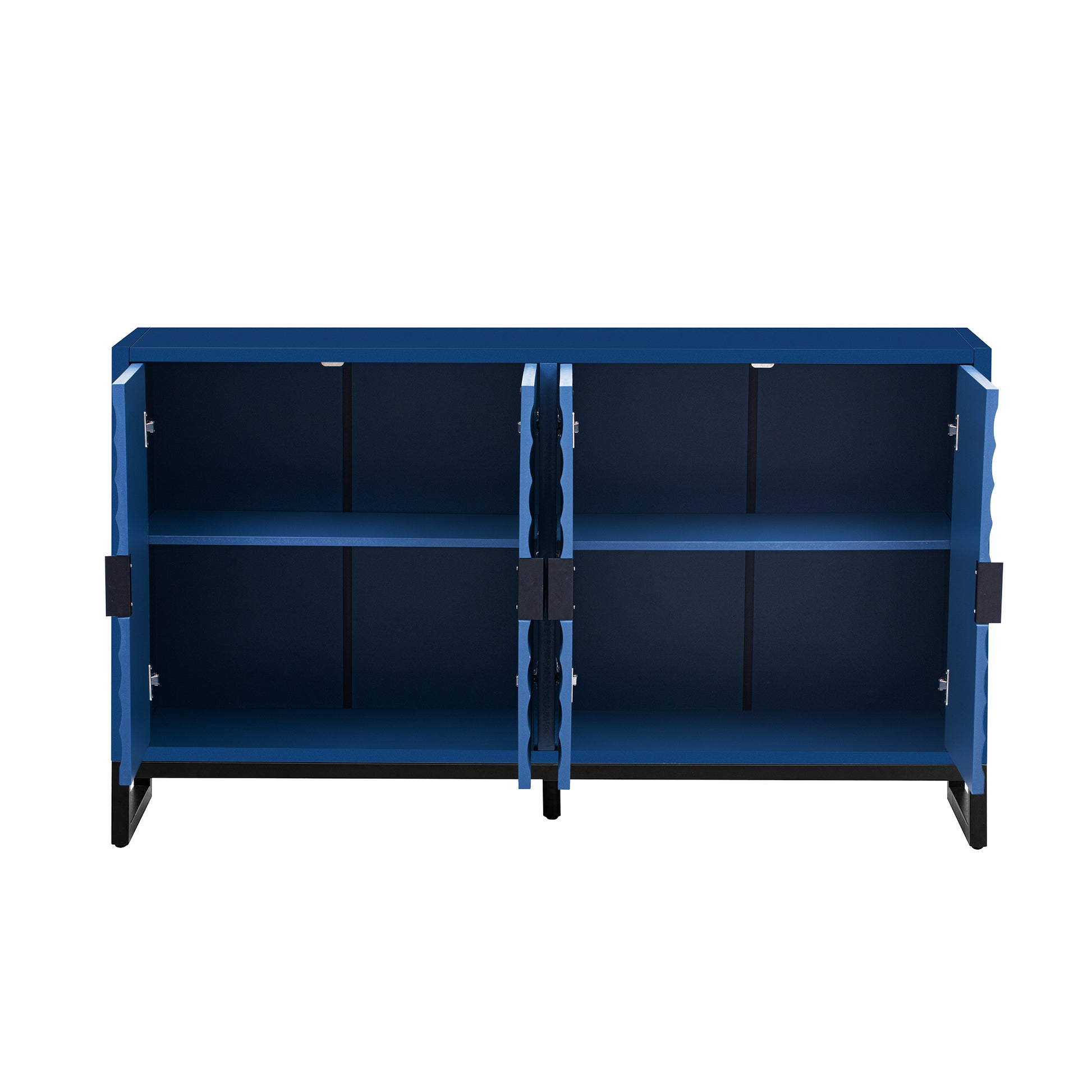 Introducing the U-Style Storage Cabinet Sideboard — a stylish fusion of American design aesthetics and practical storage. The four-door cabinet showcases a stunning water wave pattern that catches the light and becomes a focal point in any room. Finished in a navy blue tone and built with a rubberwood veneer over a robust MDF core, this sideboard blends contemporary flair with everyday durability.