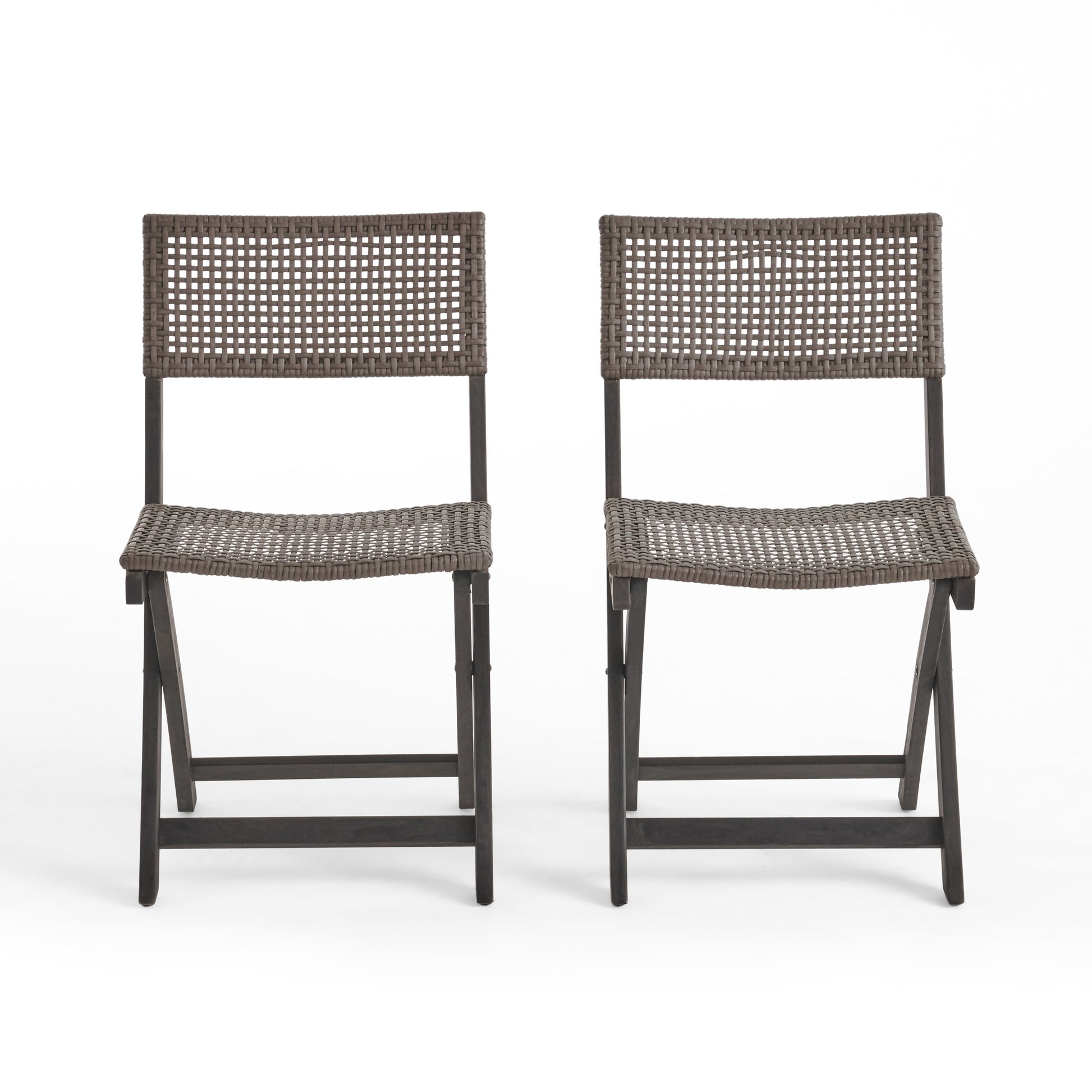 Elevate your outdoor dining or cozy indoors with the Bistro Foldable Chair Set of 2. Crafted with a durable acacia wood frame and a wicker backrest, this grey and brown finish brings a natural, sophisticated touch to any space. Each chair measures 18.25 inches in length and 21 inches in width, providing comfortable seating in a compact footprint for versatile indoor or outdoor use.