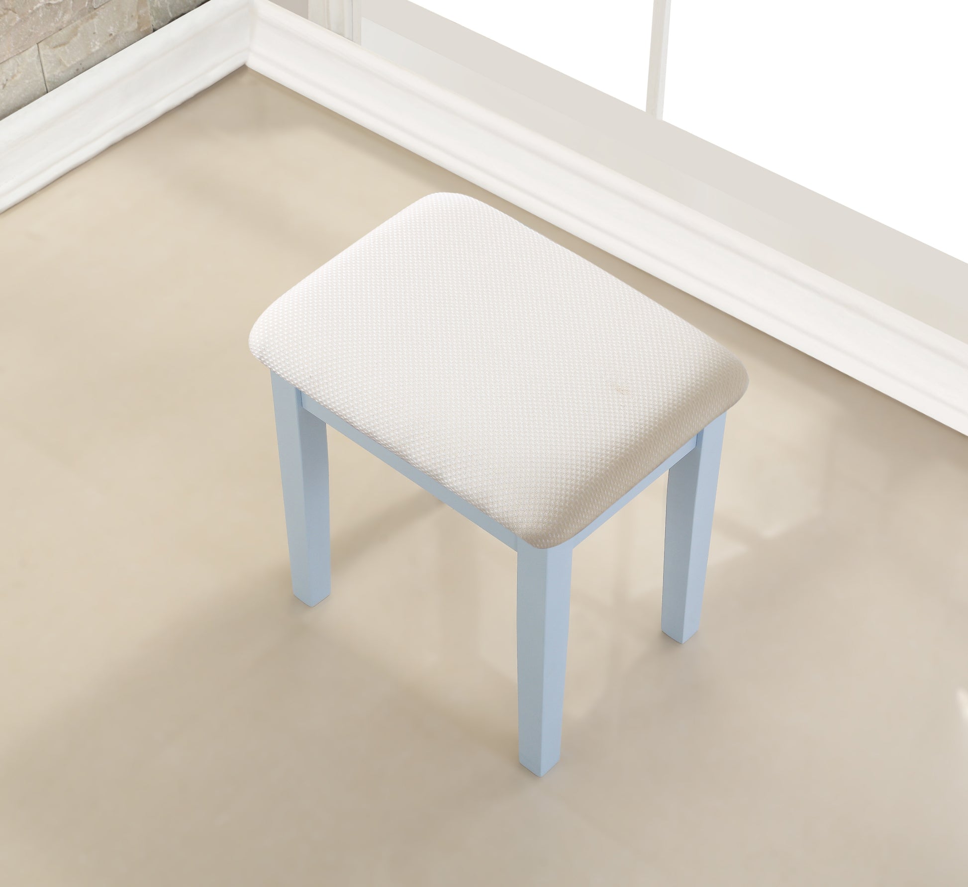 Wood Makeup Vanity Table and Stool Set for Bedroom, Contemporary Style, Space-Saving Design Blue