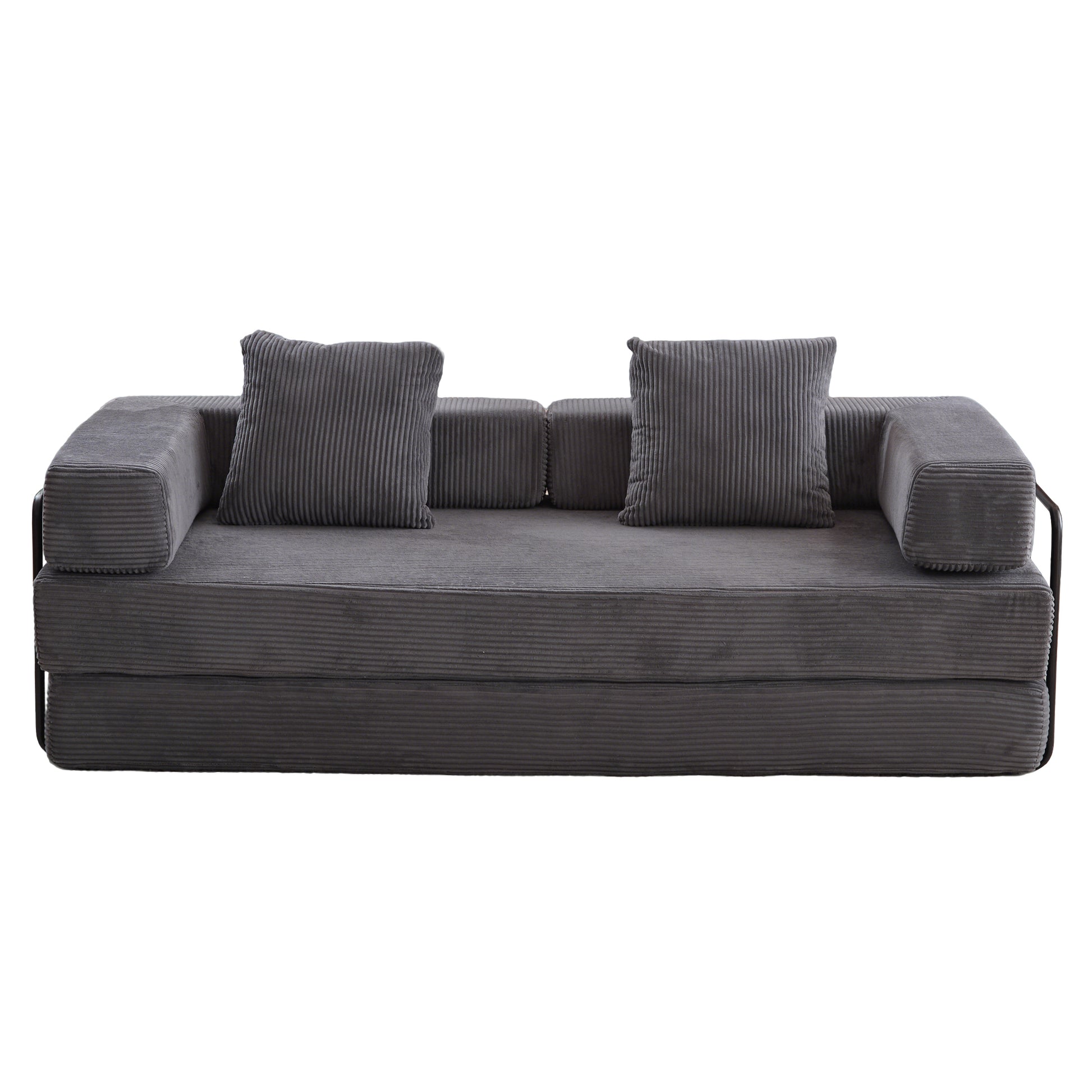 Convertible Floor Sofa Bed with Pillow Back, Corduroy Futon, 3-Seat Lounge Sleeper, Dark Grey