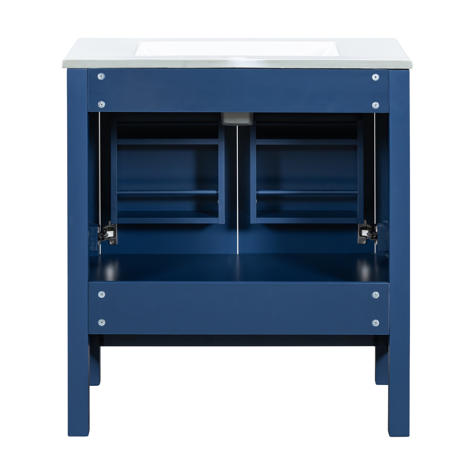 30-Inch Elegant Blue Bathroom Vanity with Ceramic Sink, Stylish Storage Cabinet Featuring Soft-Close Doors and Multifunctional Drawers