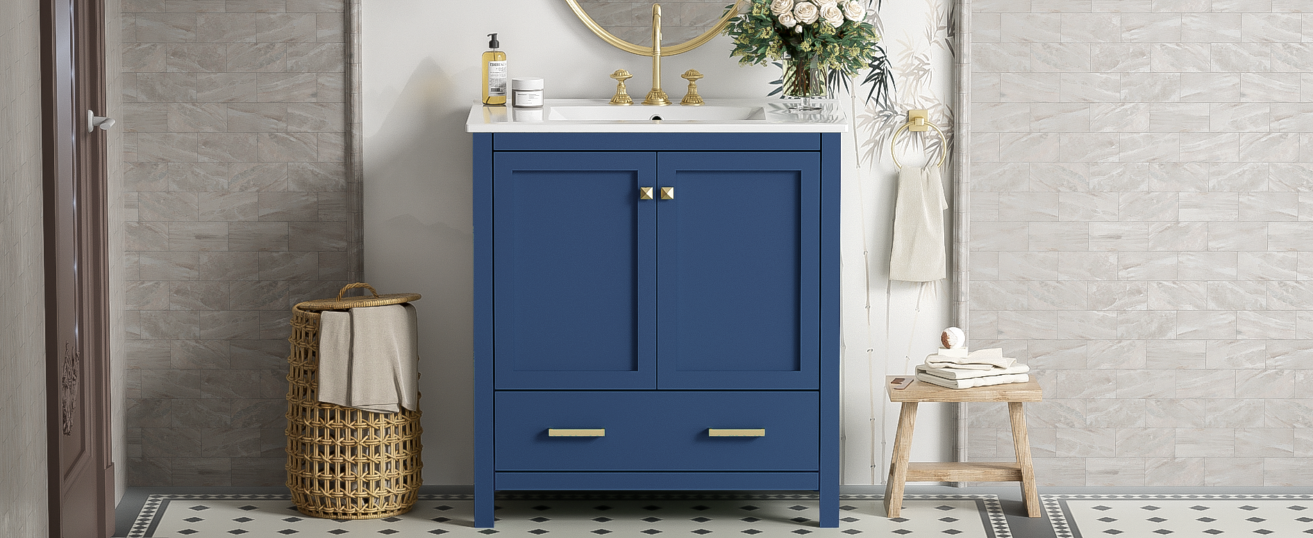 Transform Your Bathroom with the 30-Inch Elegant Blue Bathroom Vanity