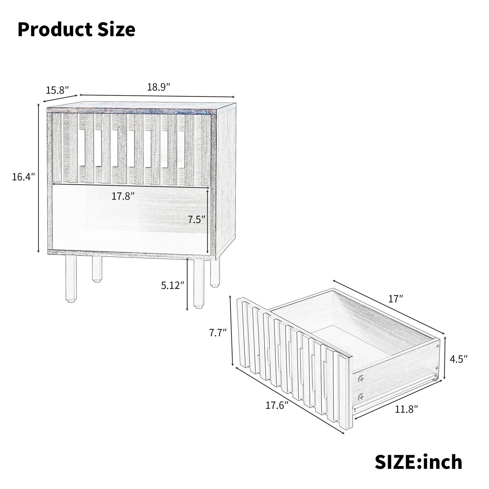 Introducing our stunning 2 Set Nightstands with Grille Striped Doors—the perfect blend of style and functionality for your bedroom, guest room, or living area. Designed with a Mid Century Modern aesthetic, these bedside tables not only serve as practical storage solutions but also as striking decor elements.
