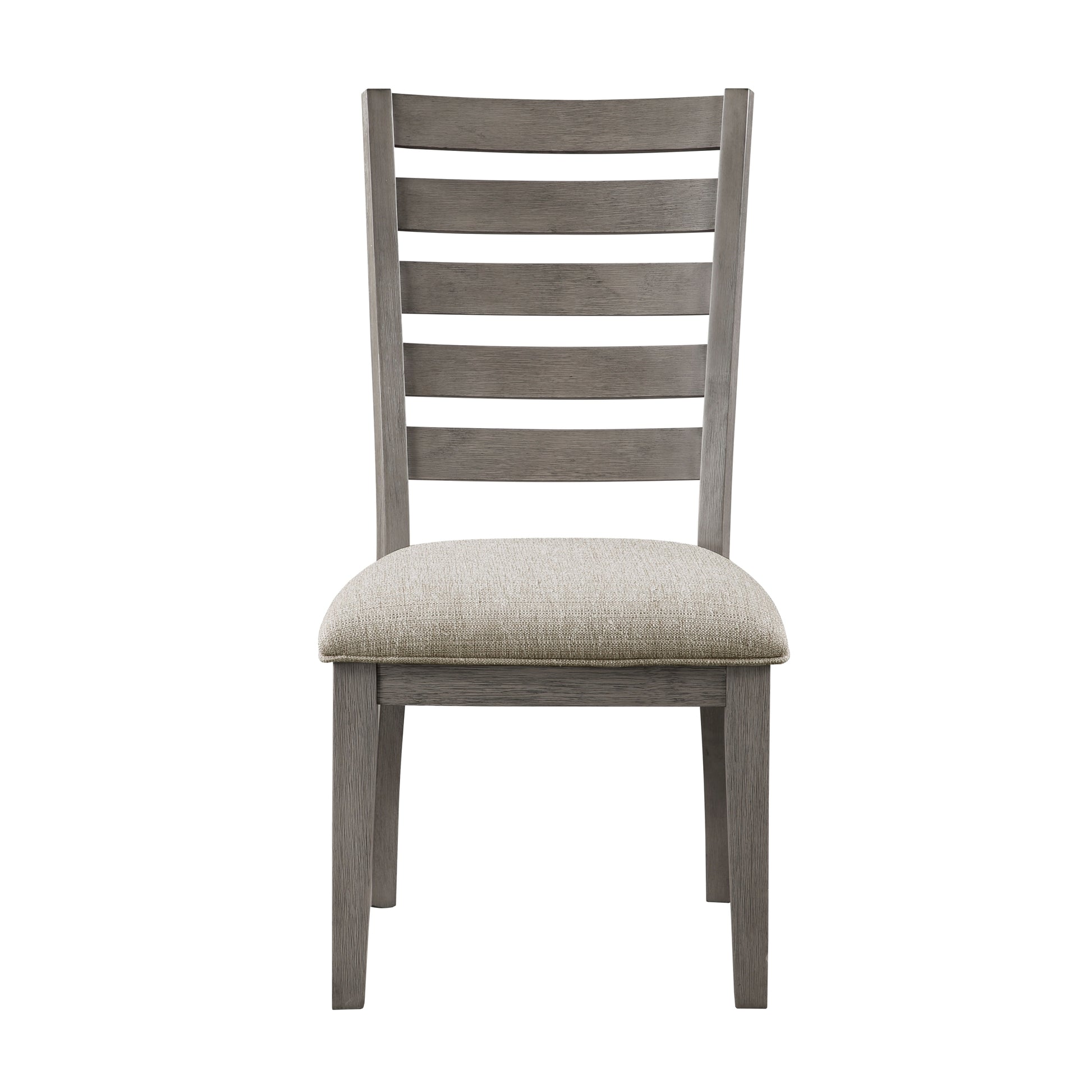 Enhance your dining space with the Tigard Collection’s timeless ladder-back dining chairs. Crafted with a solid wood frame in a refined gray finish and dressed in textured beige upholstery, these chairs offer classic Arts and Crafts-inspired lines with everyday comfort. Perfect for casual dining areas, kitchens, or breakfast nooks, they blend versatile style with dependable support.